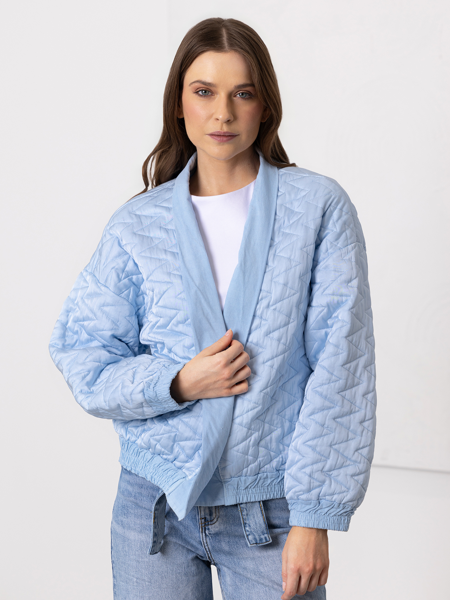 Bomberka damska pikowana błękitna