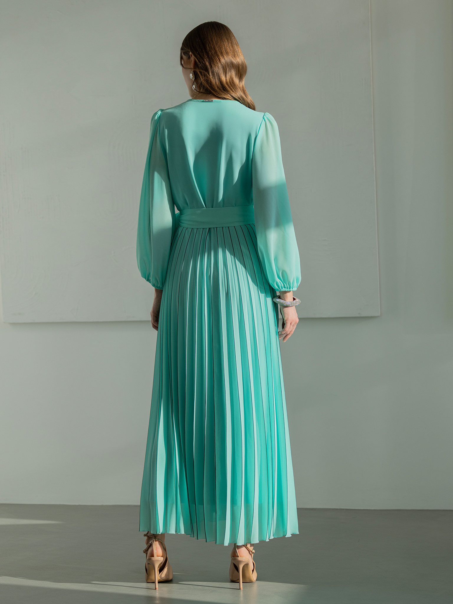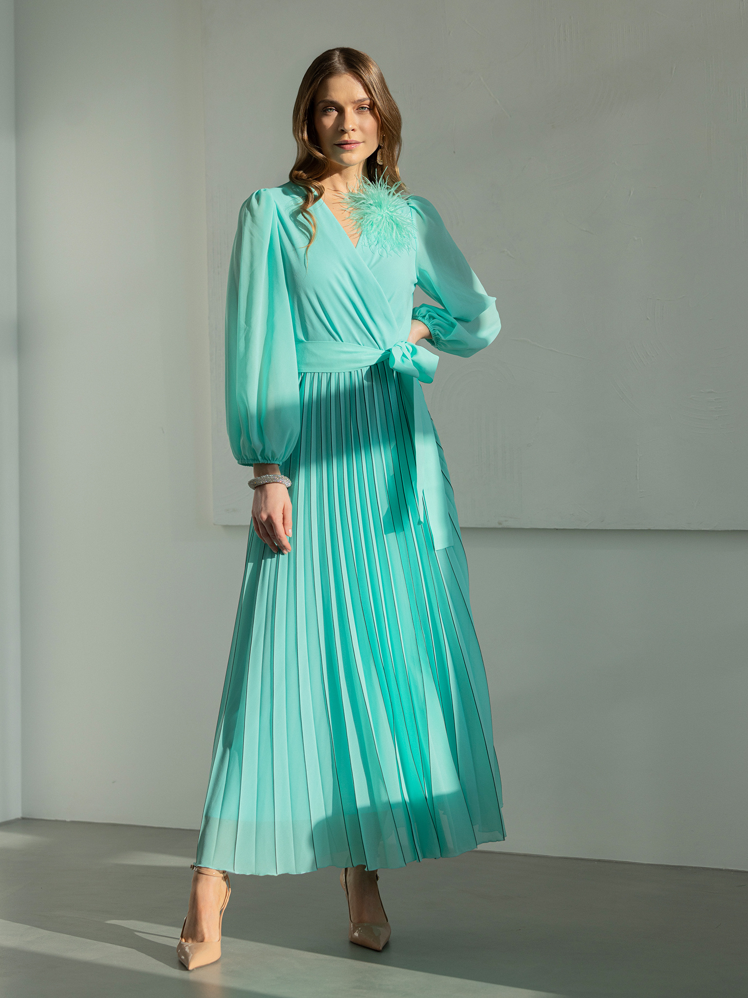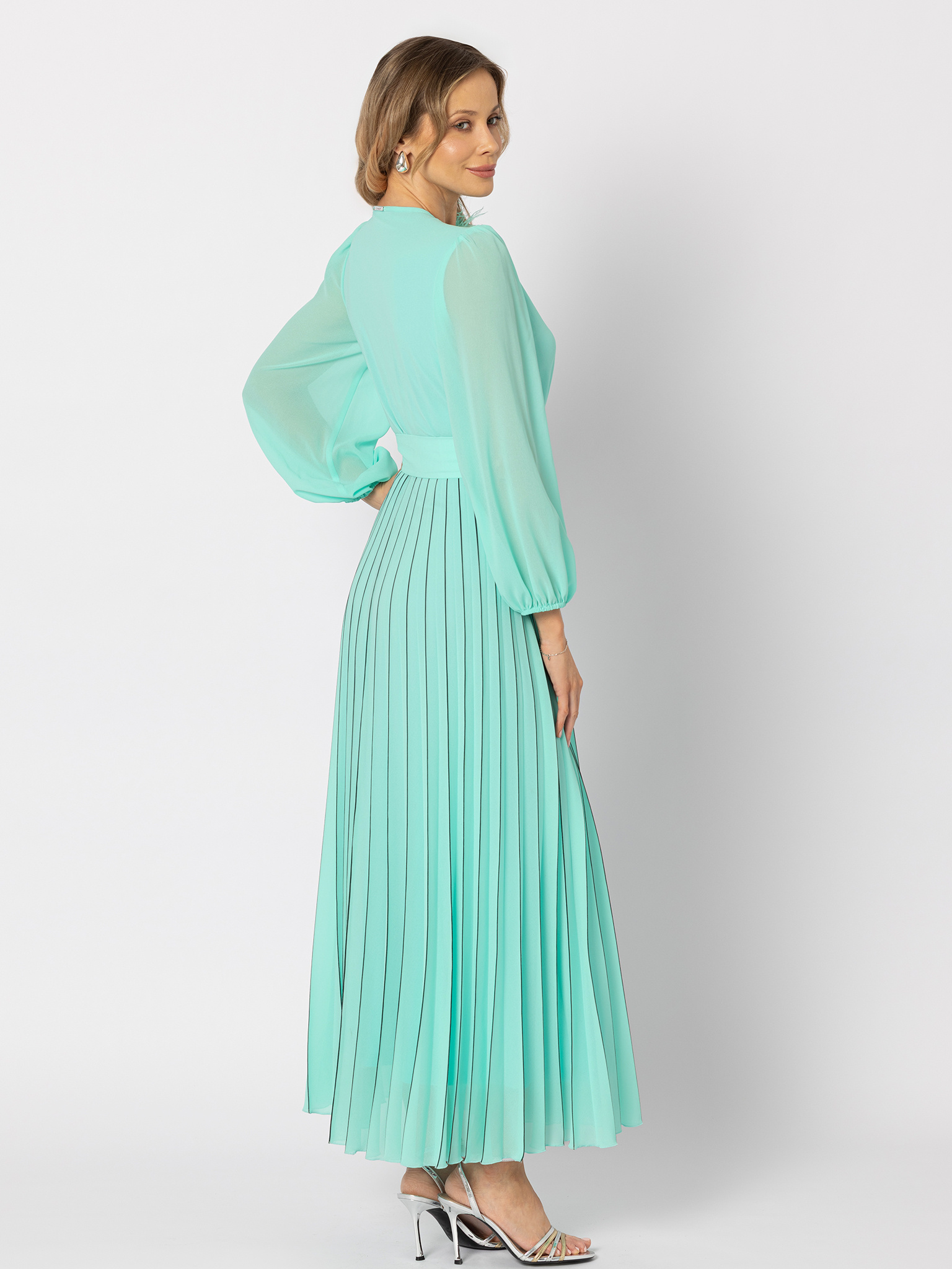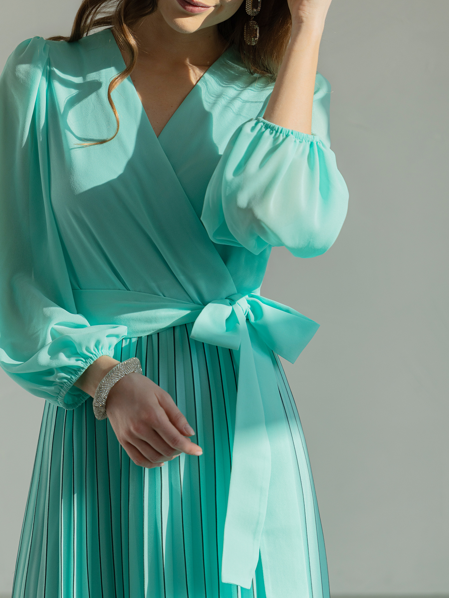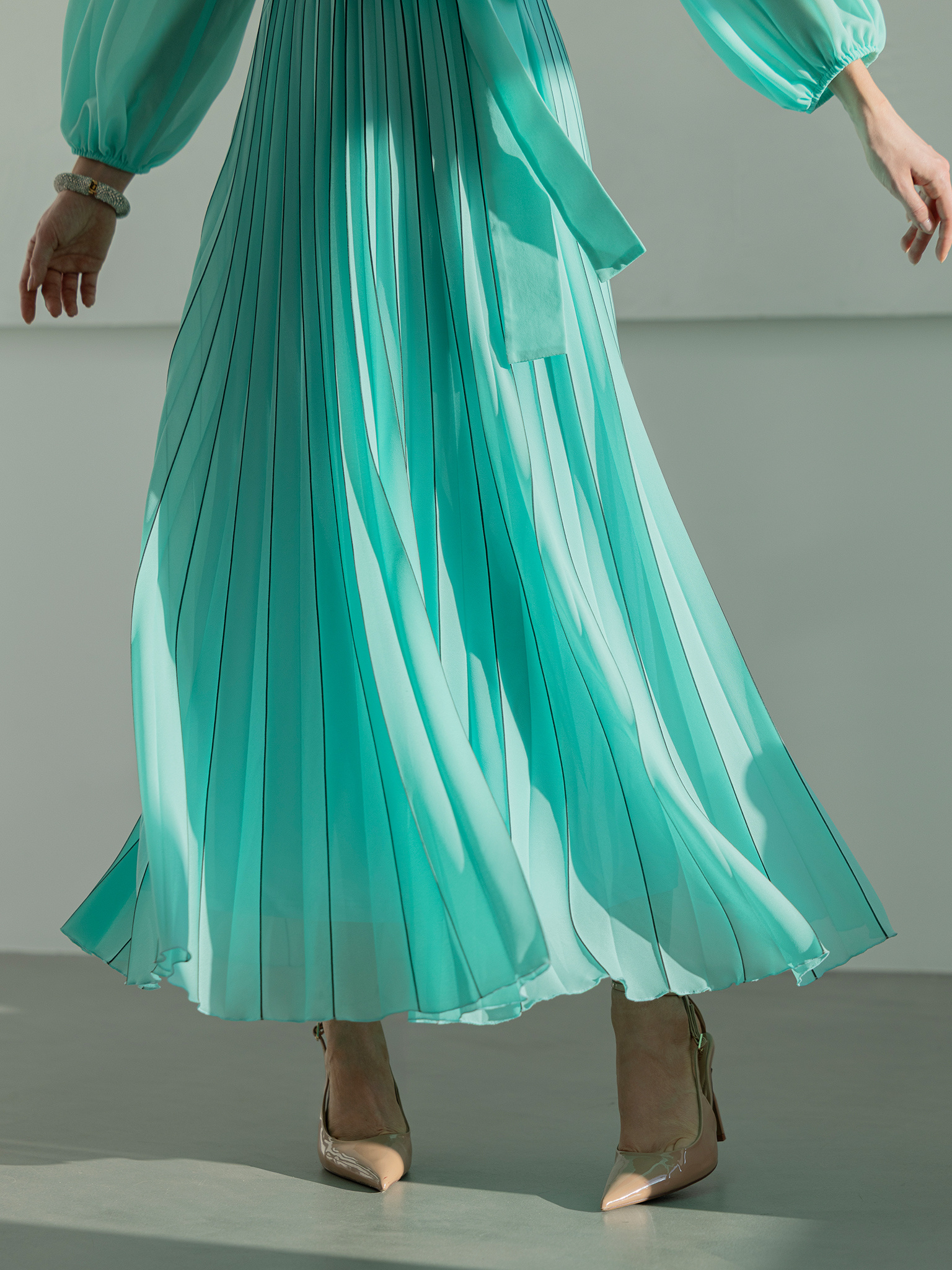 Miętowa sukienka z plisowanym dołem Grace