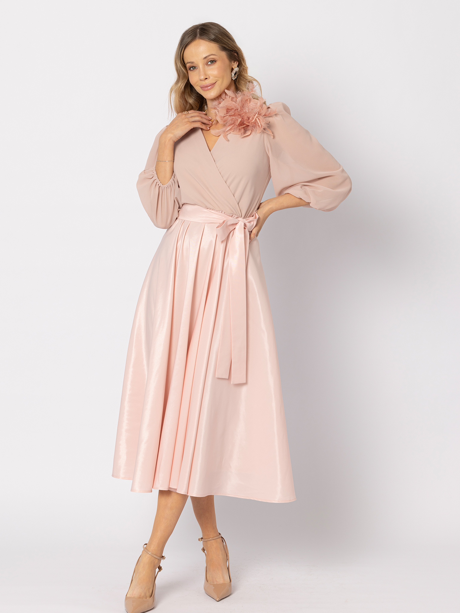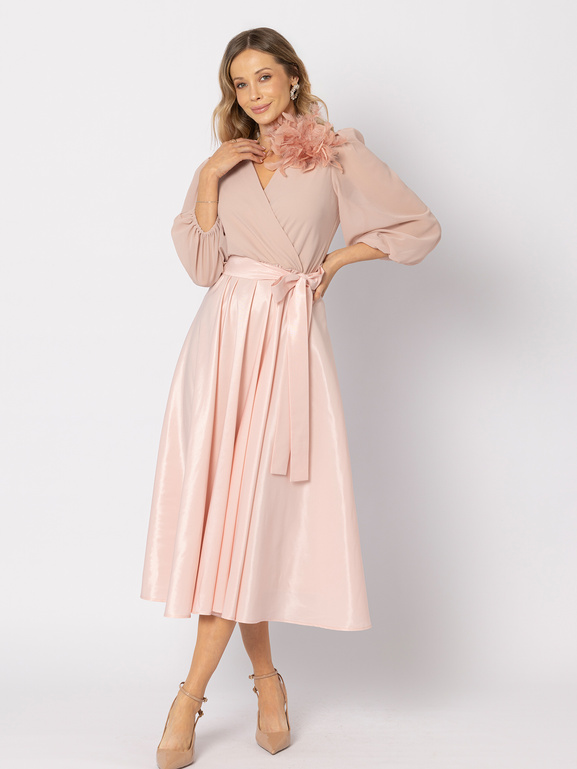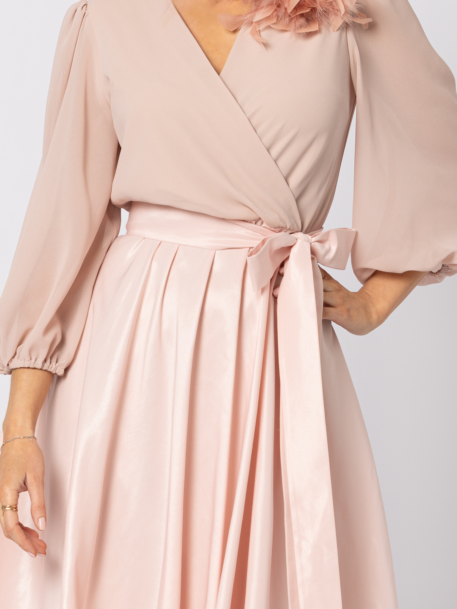Sukienka z tafty z wiązaniem pudrowy róż