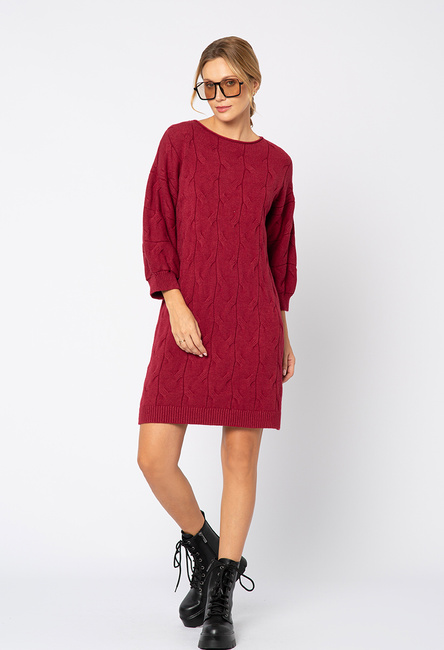 Sukienka dzianina warkocz w kolorze czerwonego wina