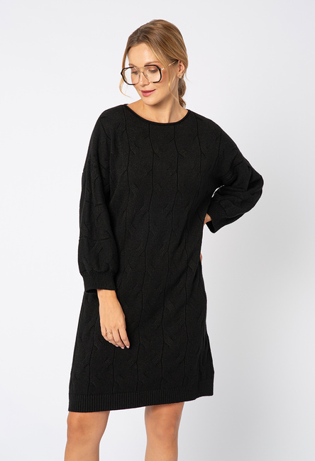Czarna sukienka dzianina warkocz