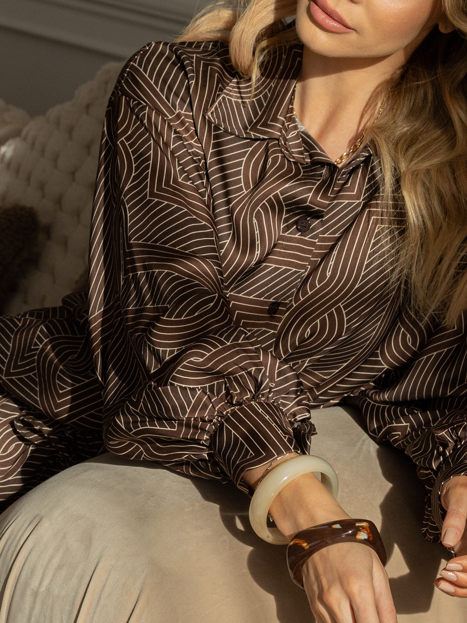 Brązowa koszula  z wiskozy w geometryczny wzór