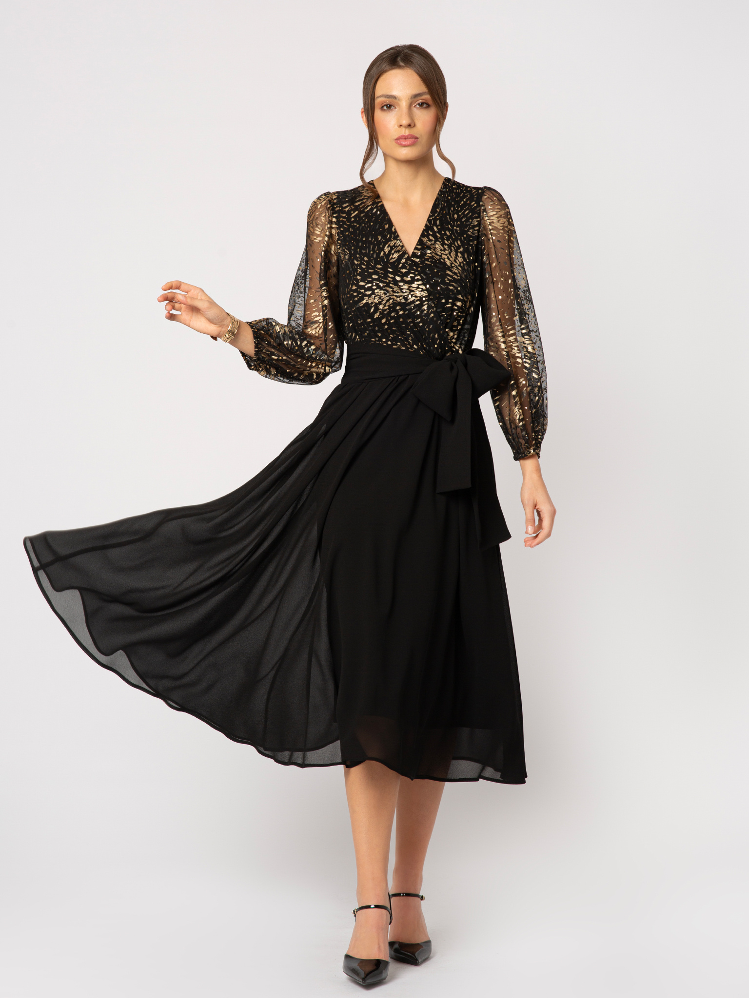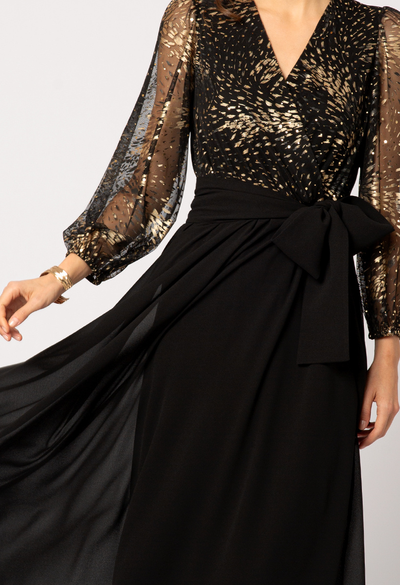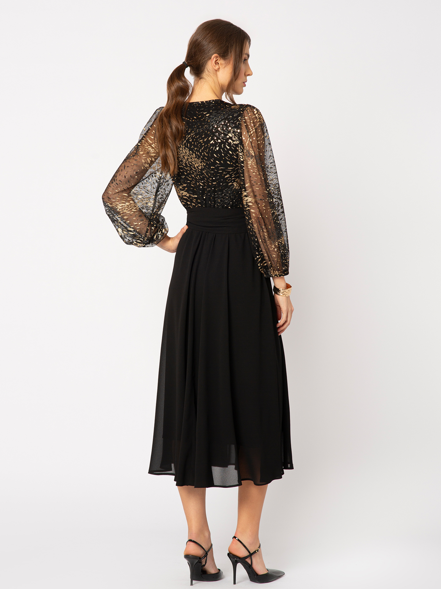 Czarna szyfonowa sukienka z górą w złoty wzór Camille