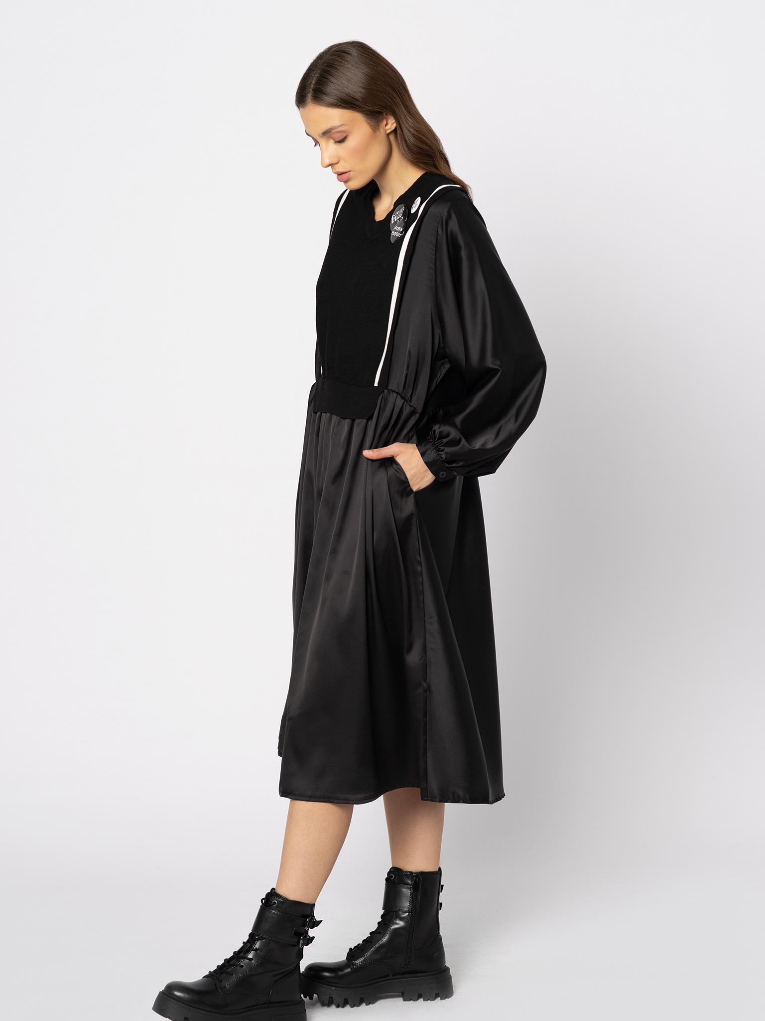 Czarna sukienka z łączonych tkanin