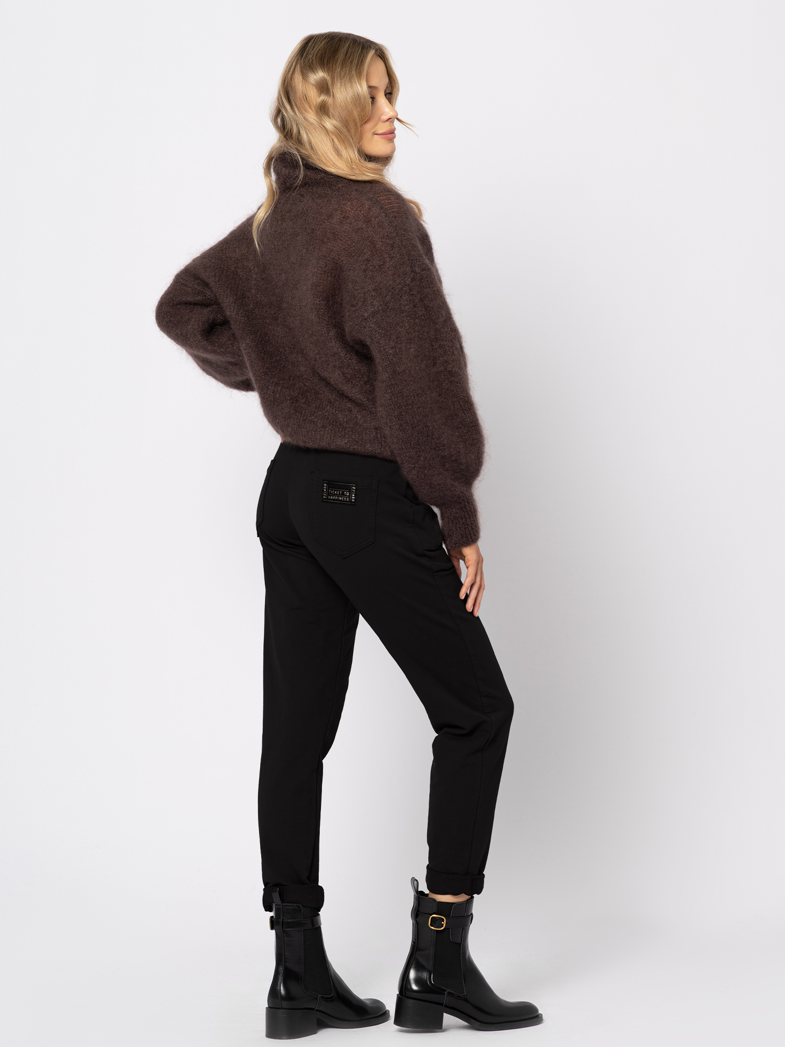 Bawełniane czarne spodnie 3/4 z troczkiem