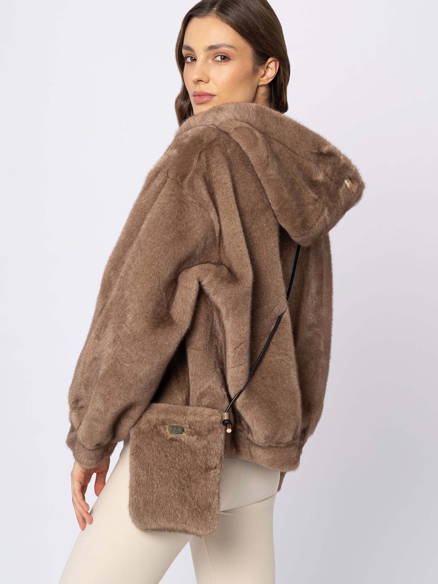 Mała beżowa torebka z eco futra na rzemyku