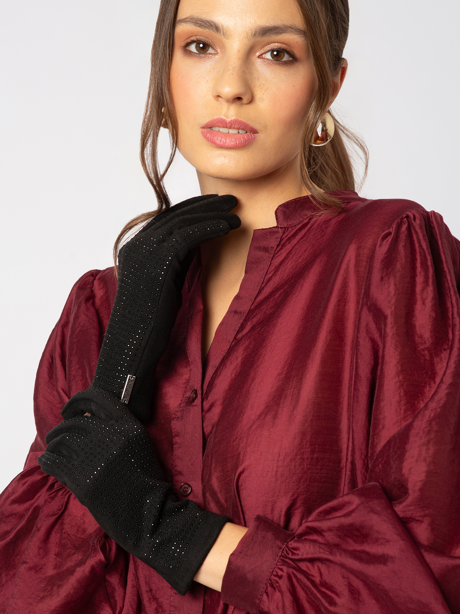 Czarne rękawiczki z drobnymi cekinami