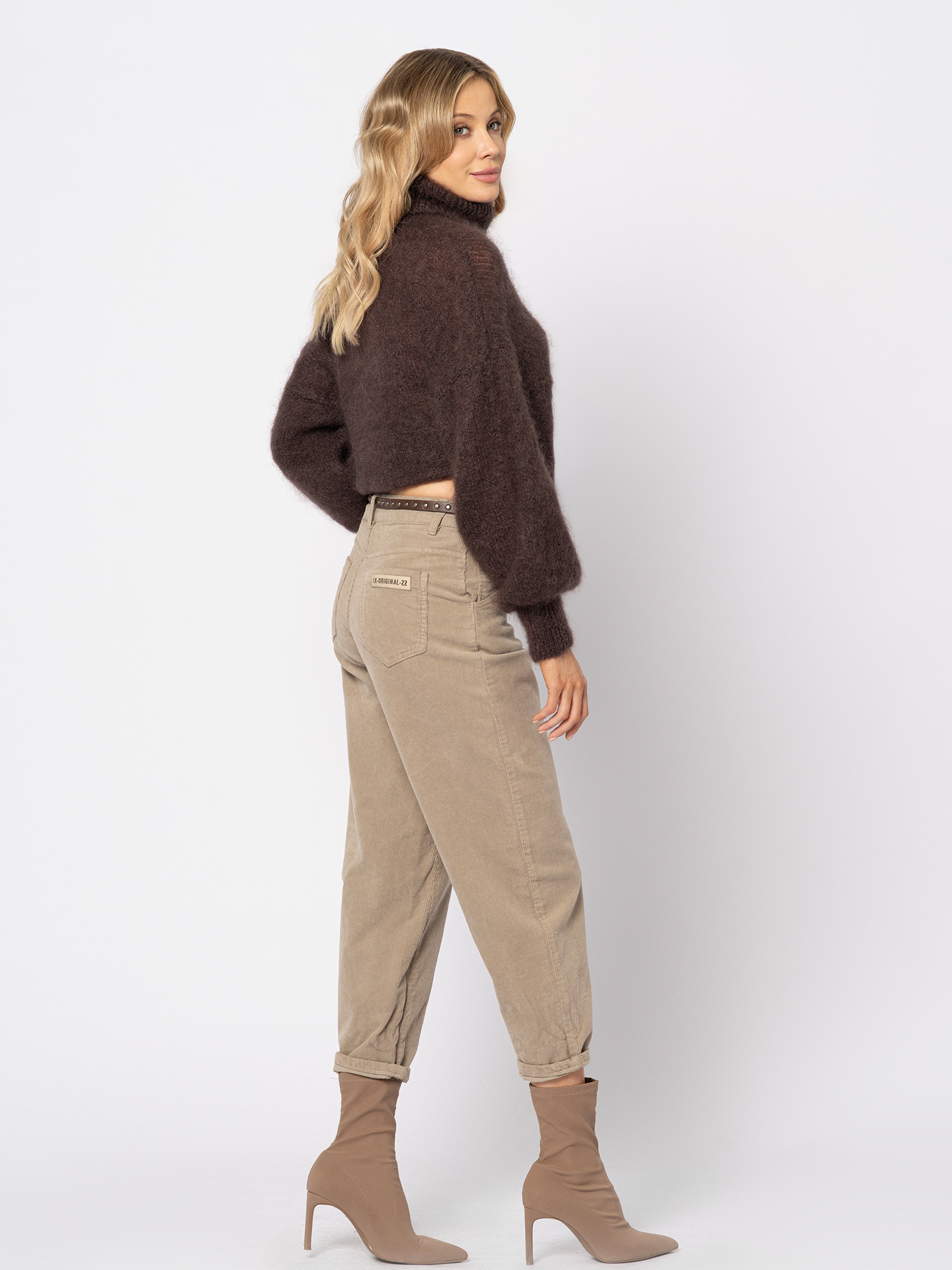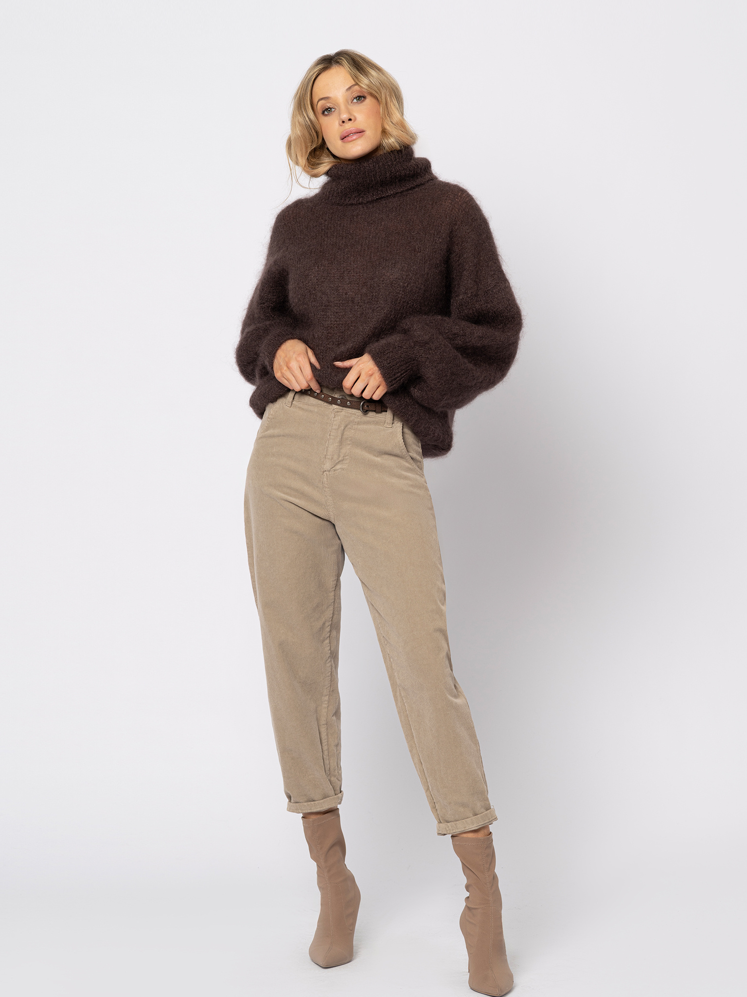 Miękki, drobny sztruks w odcieniu beżu nadaje całości ciepła i stylu, tworząc bazę do niezliczonych outfitów.