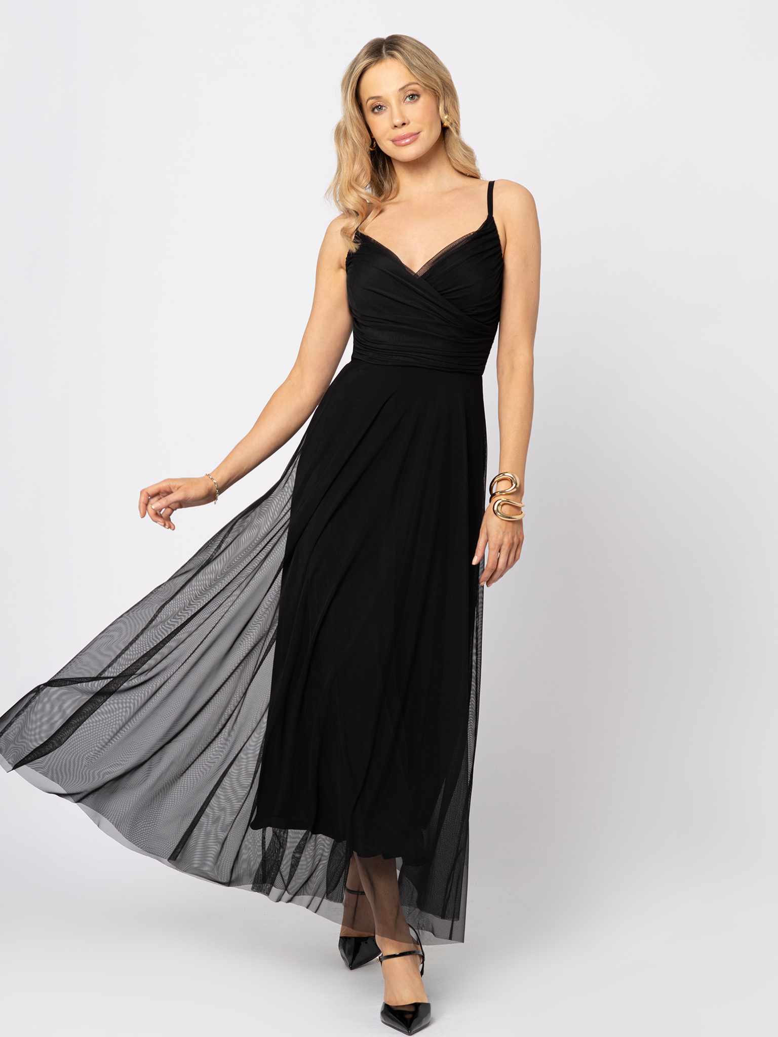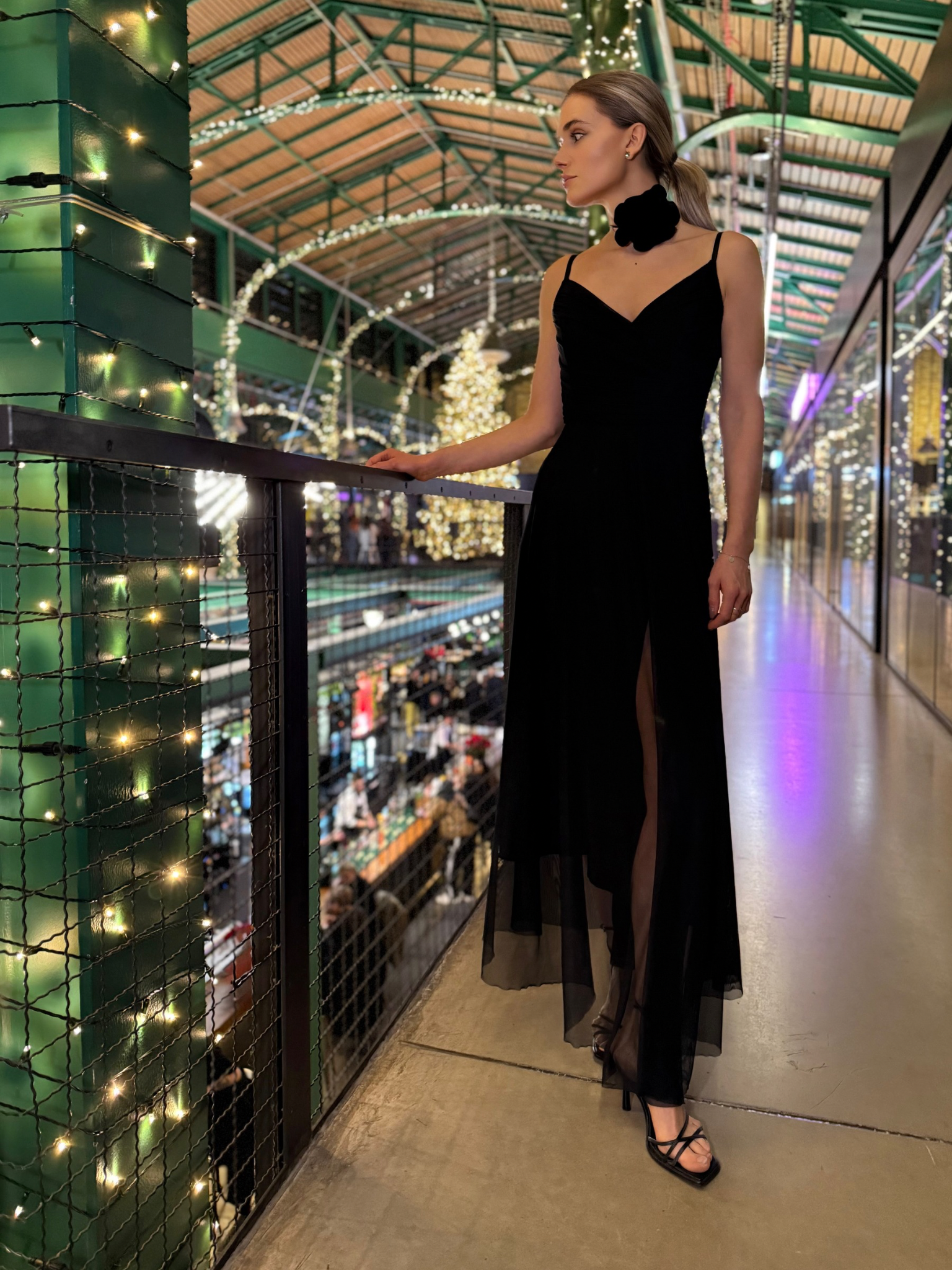 - Zmysłowa elegancja w najbardziej wyrafinowanym wydaniu. Lekka, czarna maxi zachwyca delikatnością formy i perfekcyjnym balansem między elegancją a kobiecą sensualnością. Idealna na studniówkę, ale także na wieczorne wyjścia.