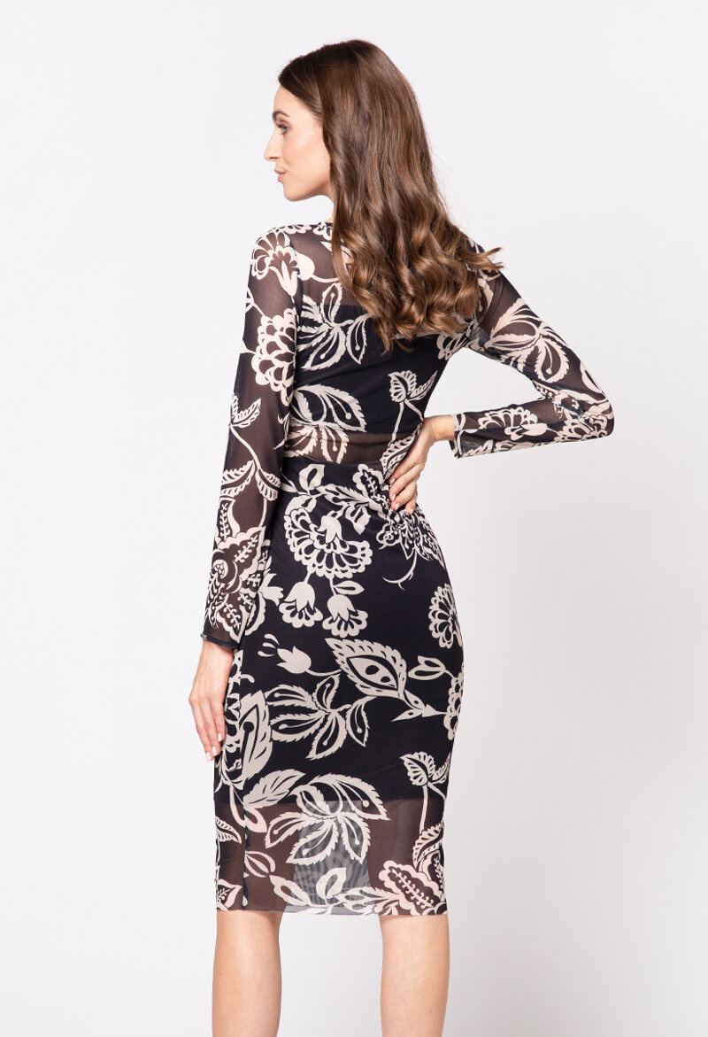 Czarna sukienka tuba z siatki w kwiatowy wzór ecru Georgine