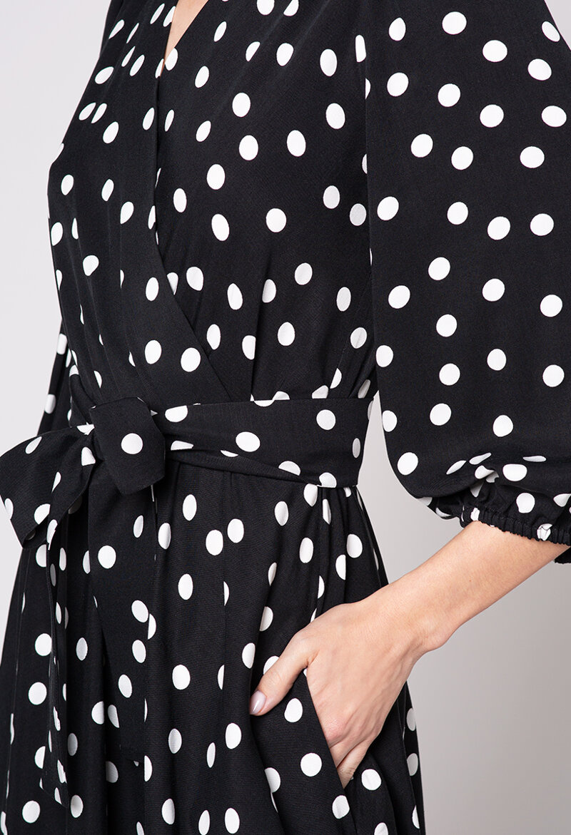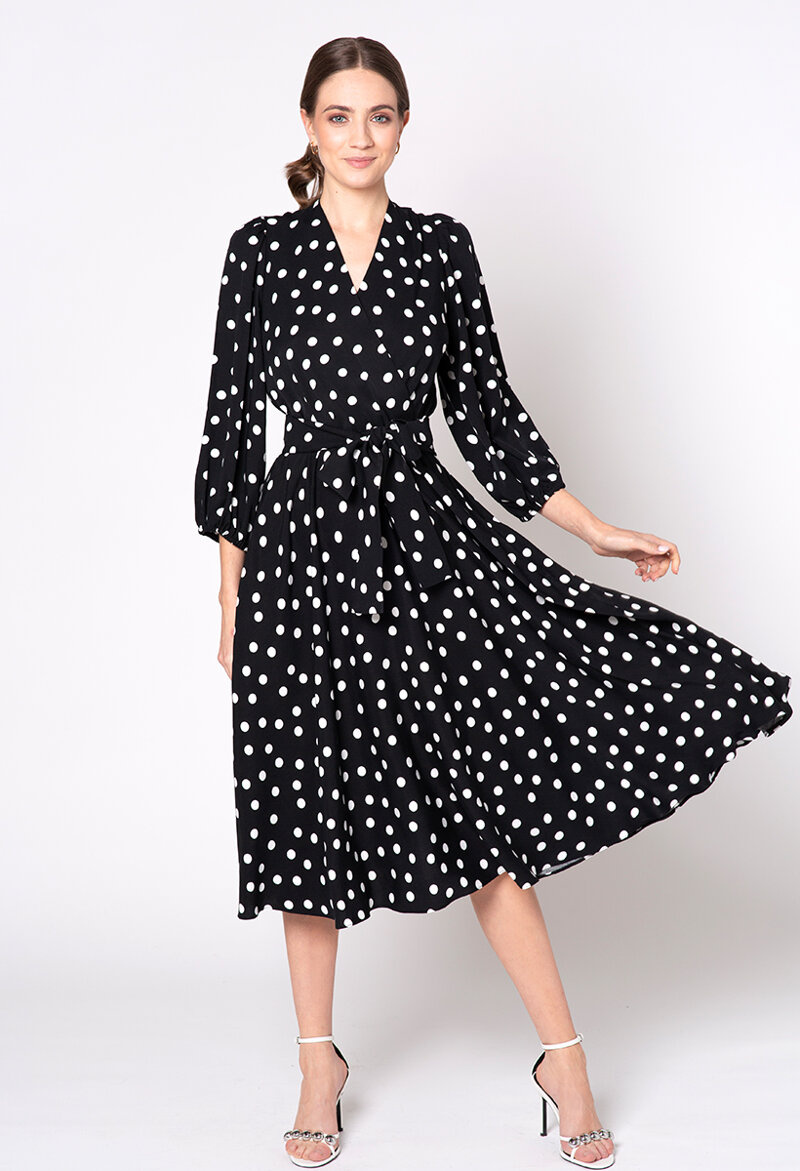 Czarna sukienka z wiskozy w drobne grochy Ginette