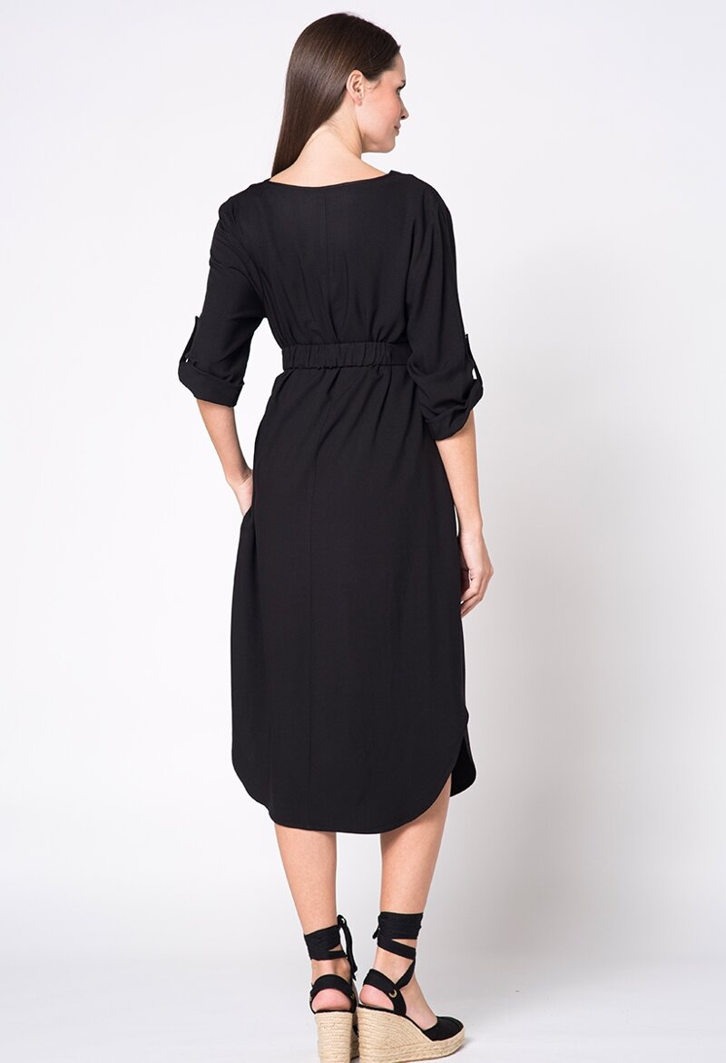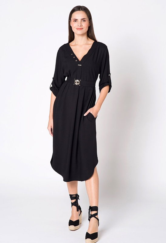 Czarna sukienka z wiskozy z paskiem z klamrą Ávila