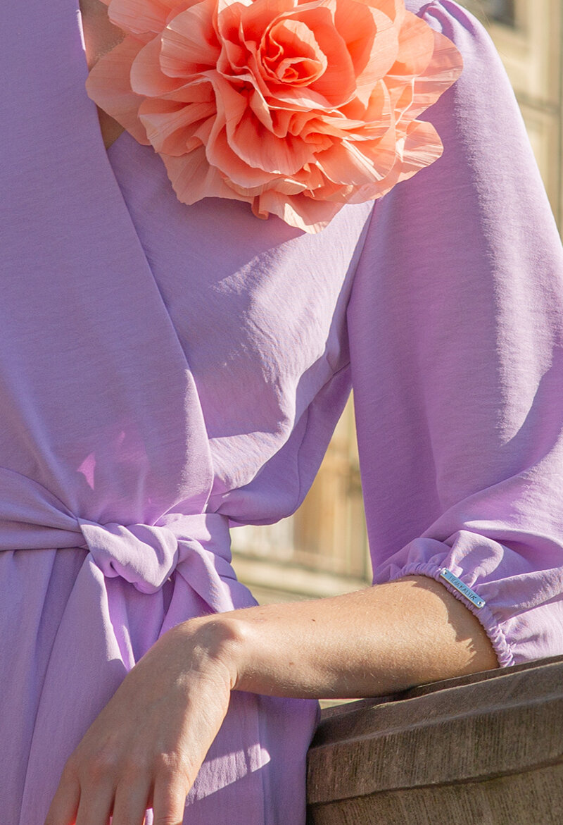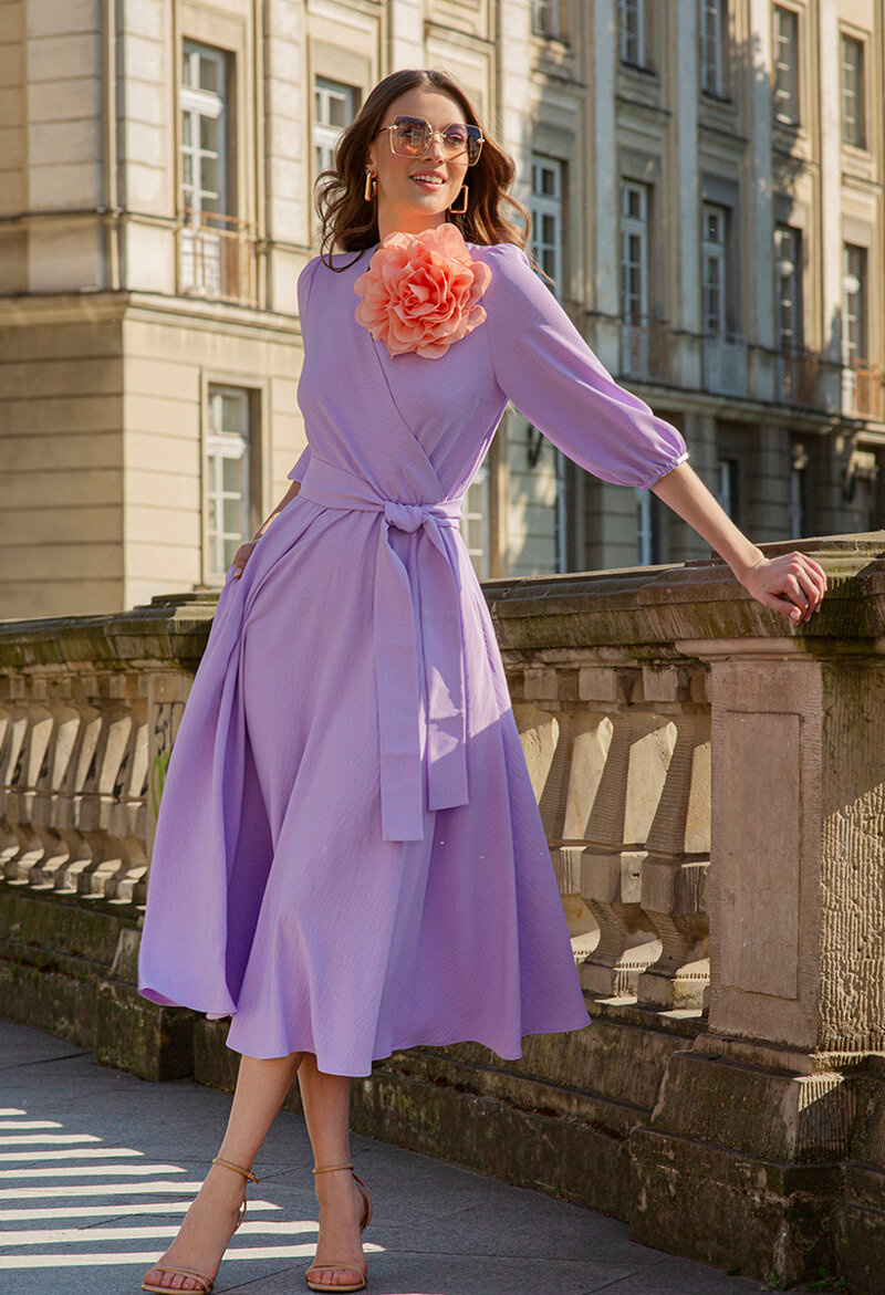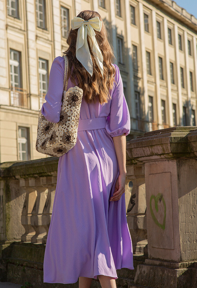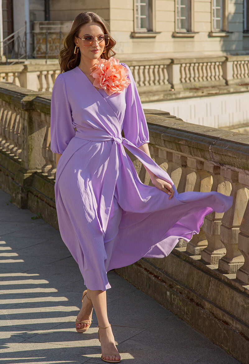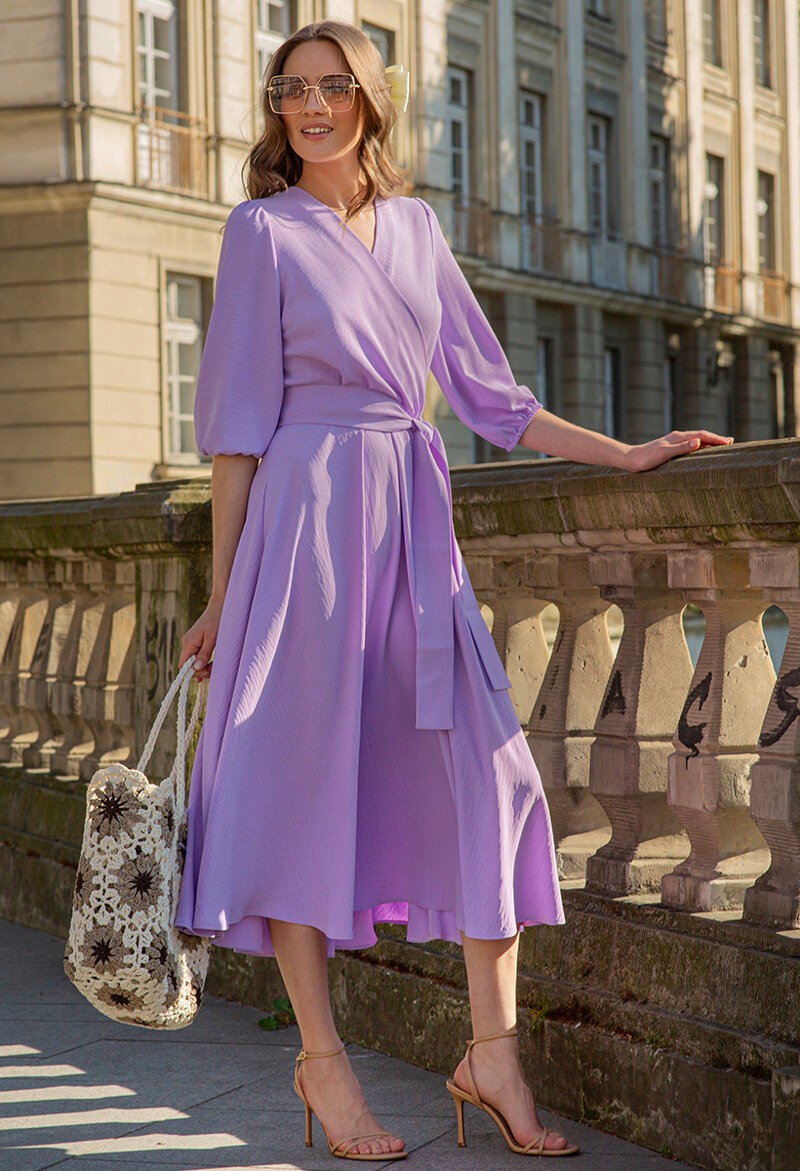 Lawendowa midi sukienka z paskiem Ophélie