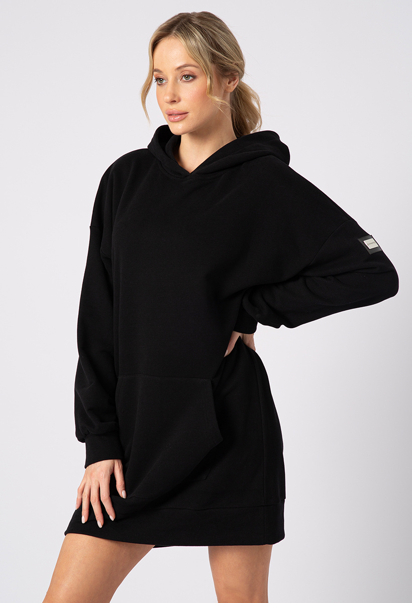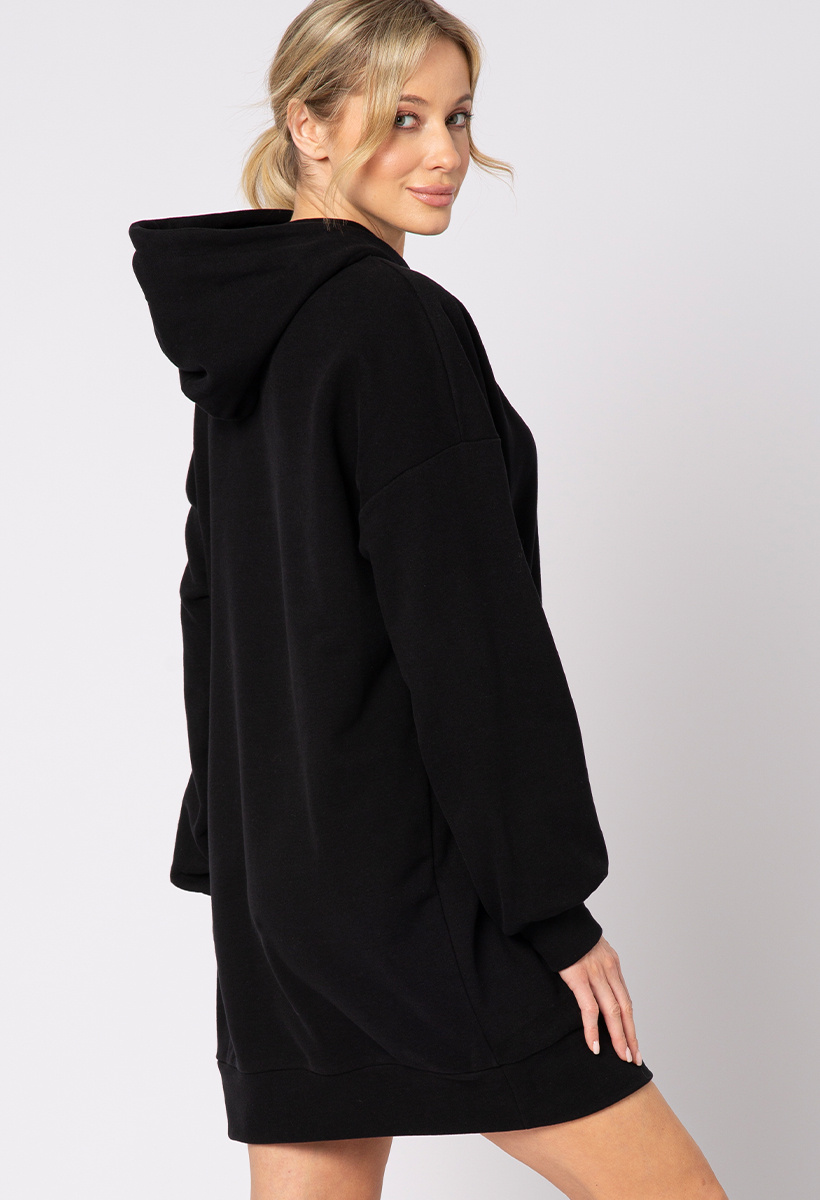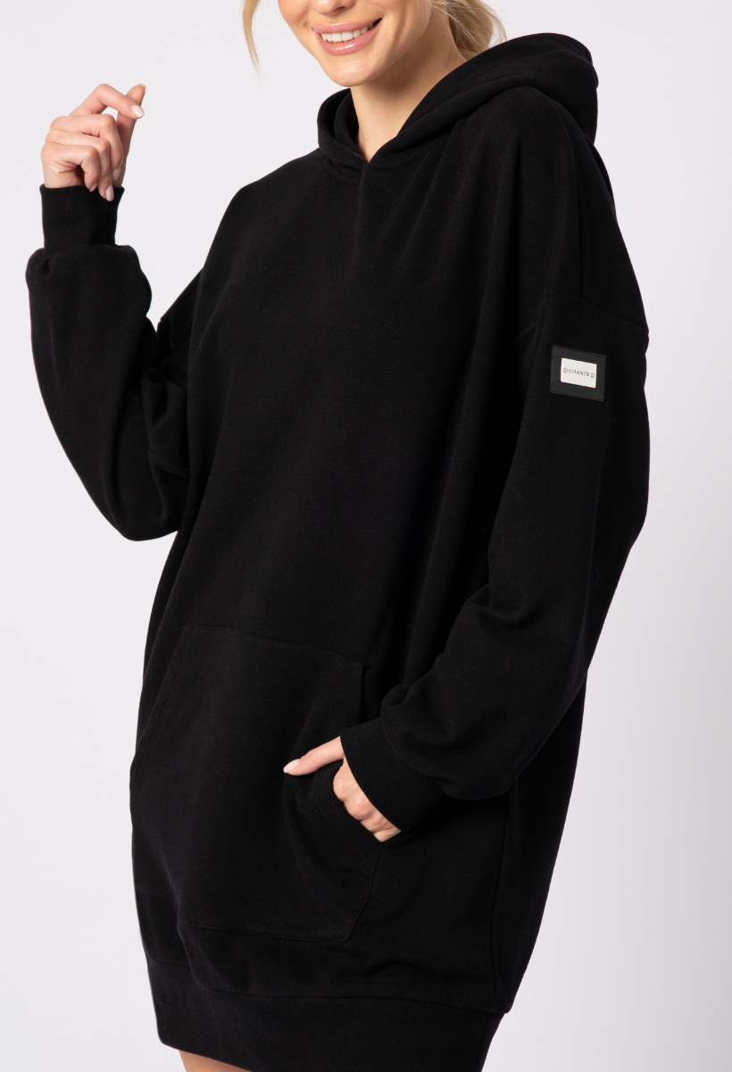 Długa czarna bawełniana bluza z kapturem Ann