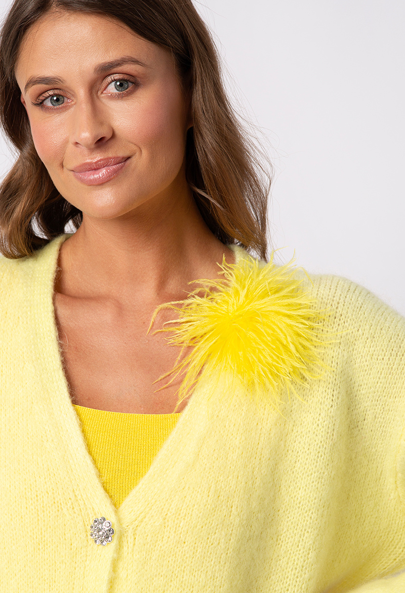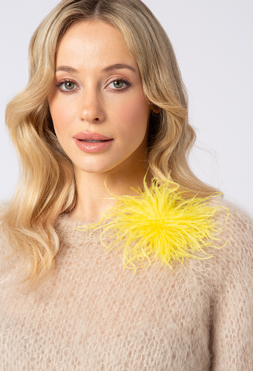 Dodaj swojej stylizacji lekkości i wyjątkowego charakteru. Broszka w kształcie żółtych piórek to subtelny i elegancki dodatek, który przyciąga uwagę. Żółty odcień wprowadza nutę świeżości, a lekka forma piórek nadaje całości eterycznego uroku. Idealnie sprawdzi się jako ozdoba swetra, marynarki czy bluzki oraz sukienki, dodając Twojej stylizacji unikalnego wykończenia. Ten drobny akcent potrafi odmienić każdą kreację.