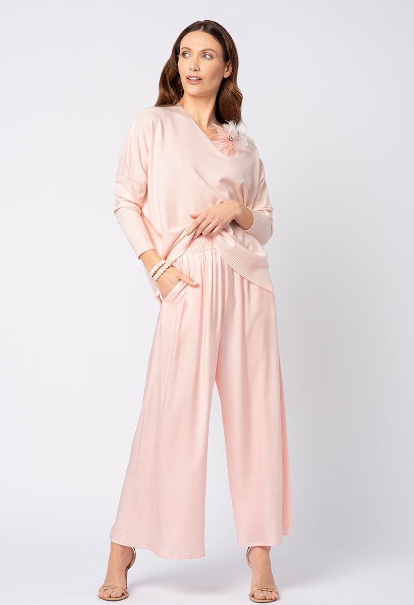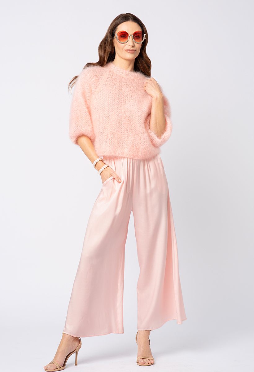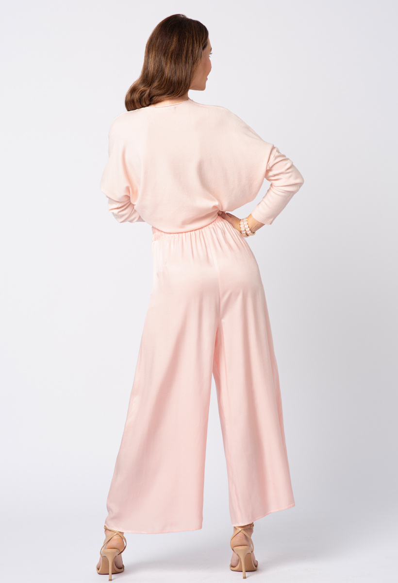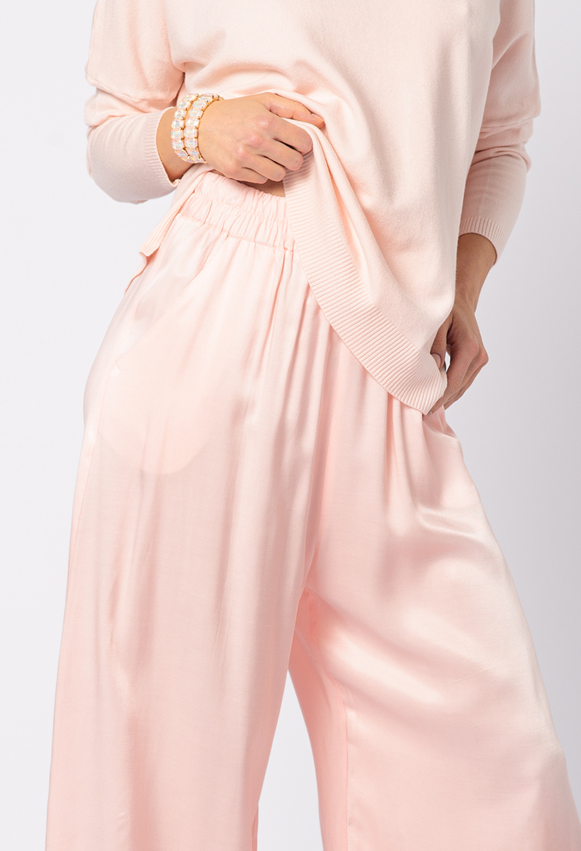 - Lekkość, elegancja i wyrafinowanie. Kwintesencja kobiecego stylu i komfortu. Delikatny materiał pięknie się układa, subtelnie odbijając światło i dodając stylizacji wyrafinowanego charakteru. Szerokie nogawki nadają im lekkości i swobody.