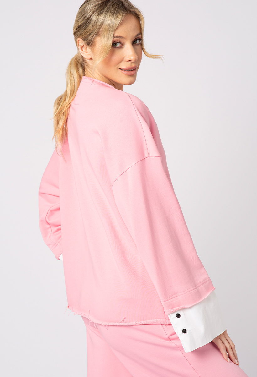Różowa bawełniana bluza z koszulowym mankietem Callie