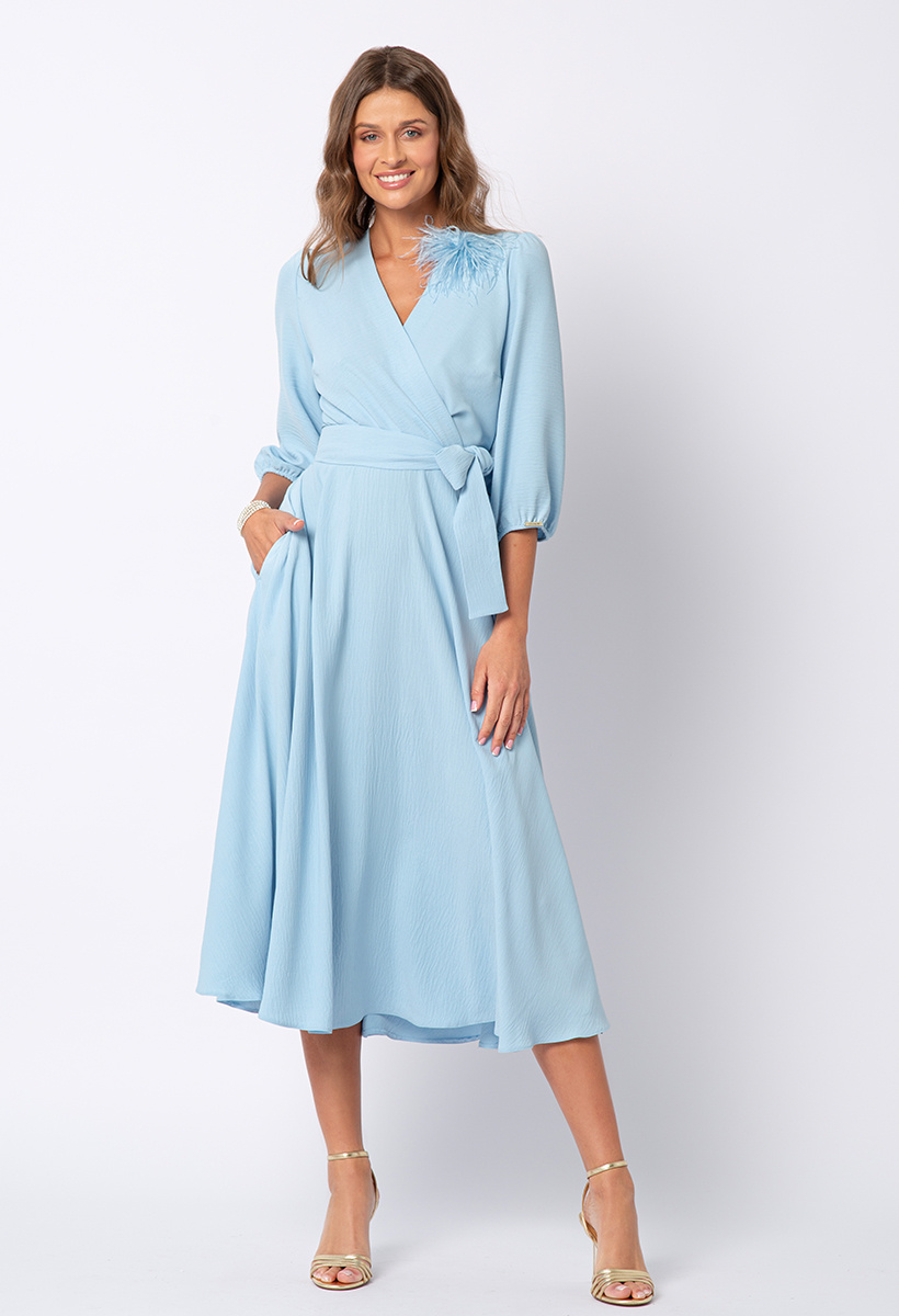 - Jeśli lubisz ponadczasowe, uniwersalne fasony i kolory to ta sukienka jest właśnie dla Ciebie. Klasyczny krój, kopertowy dekolt, rozkloszowana spódnica. Wyjątkowym atutem tej sukienki są kieszenie. Kwiat - broszka sprzedawany jest oddzielnie.