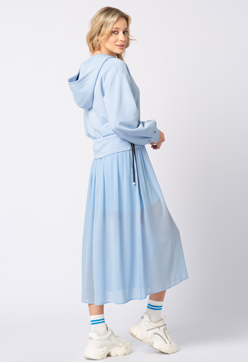 Niebieska bawełniana sukienka z szyfonowym dołem Melody