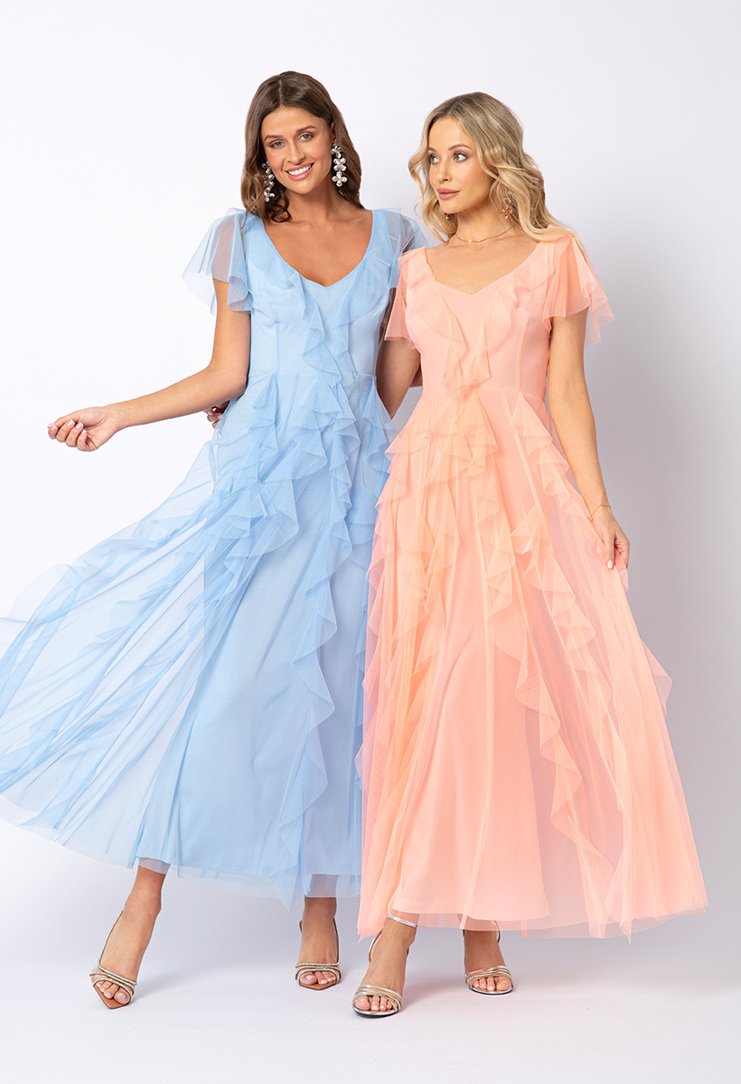 Długa sukienka z tiulu to elegancka i efektowna kreacja, która idealnie pasuje na wydarzenia, takie jak wesela, bankiety, bale lub inne uroczystości. Wykonana z delikatnego, zwiewnego materiału, tiulowa sukienka sprawi, że poczujesz się jak prawdziwa księżniczka. Charakteryzuje się długim, opadającym do ziemi fasonem, który nadaje jej szykowności i subtelnej romantyczności. Tiulowe falbany dodają całej sylwetce lekkości i pięknie układają się w ruchu. Dopasowana kolorystycznie podszewka zapewnia odpowiednie pokrycie ciała, jednocześnie pozwalając tiulowi na swobodne unoszenie się.