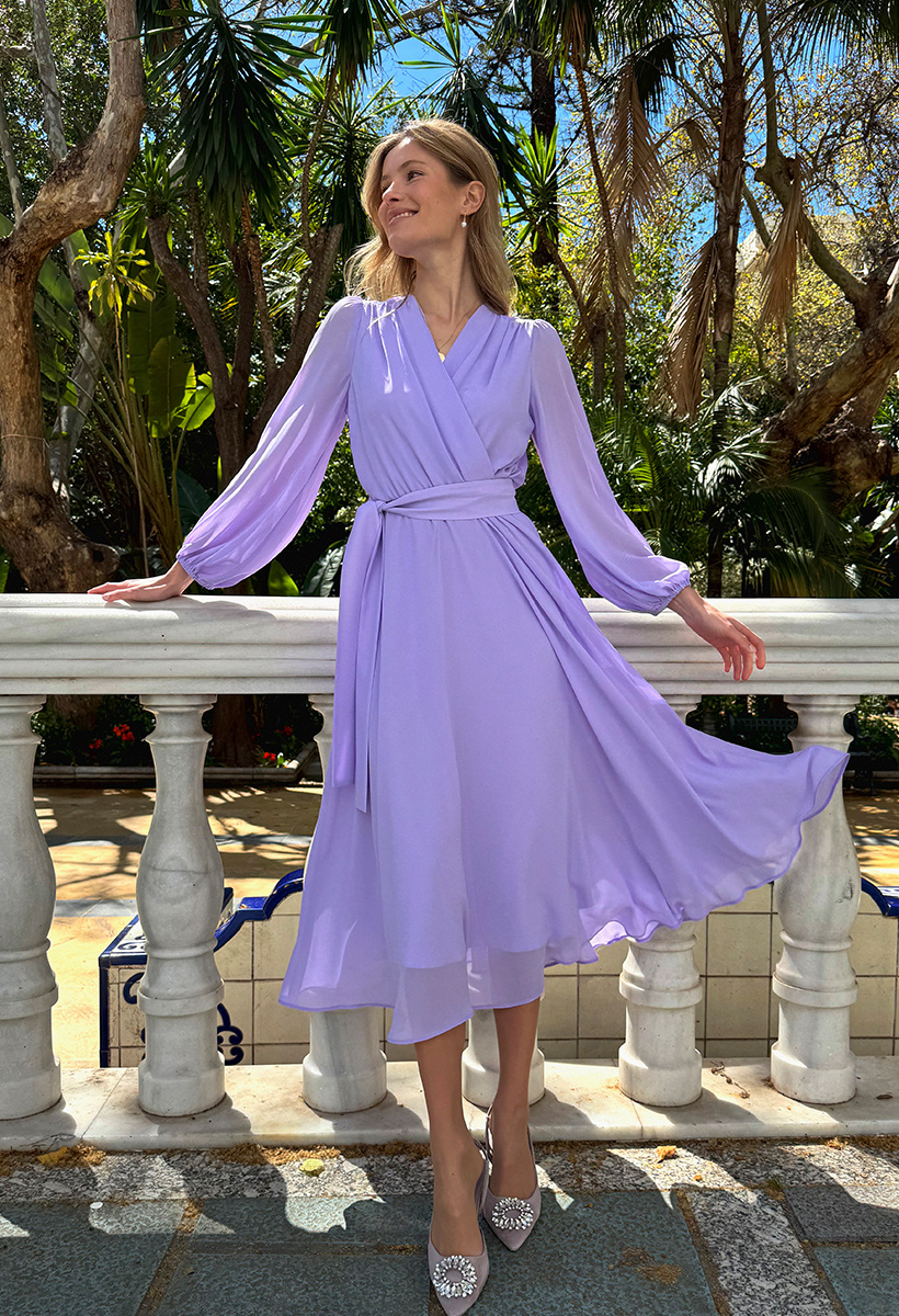 Sukienka z lawendowego szyfonu Olympia