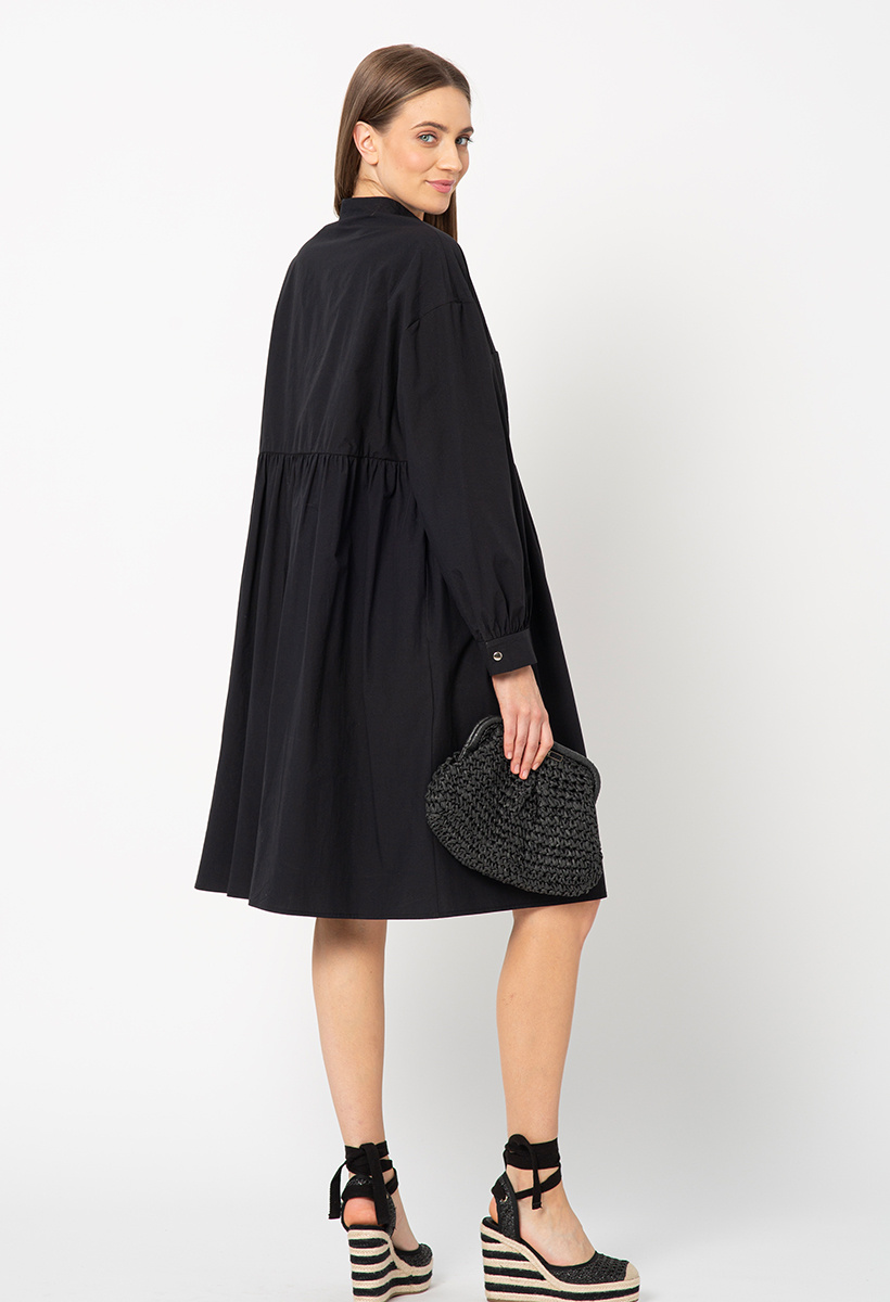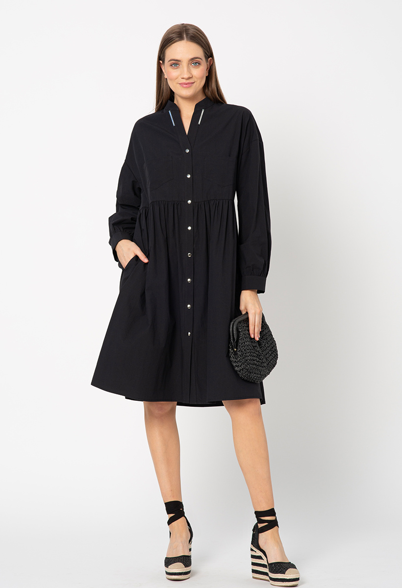 Czarna bawełniana sukienka ze stójką zapinana na guziki