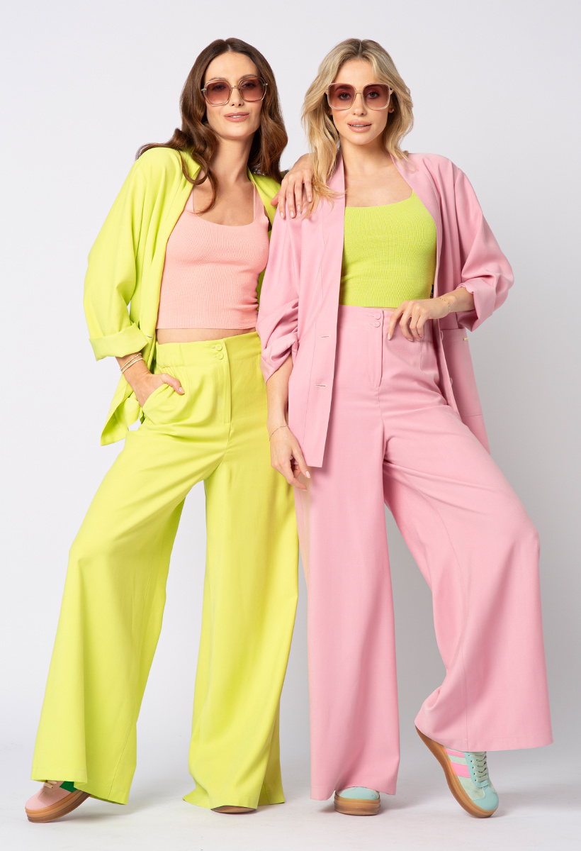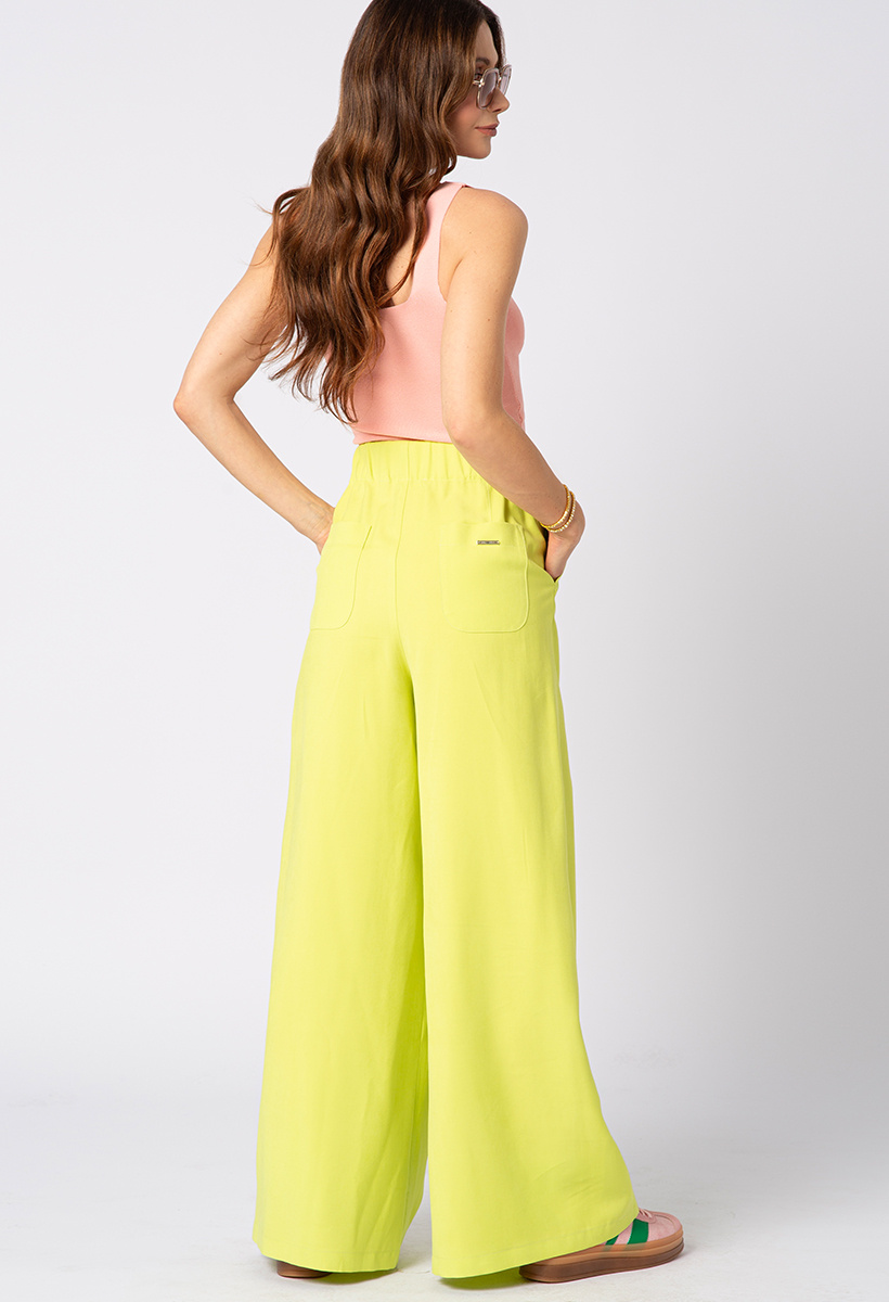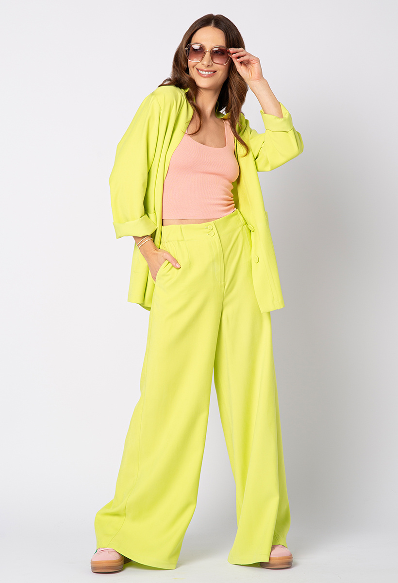 Limonkowe wiskozowe spodnie z szeroką nogawką Jane