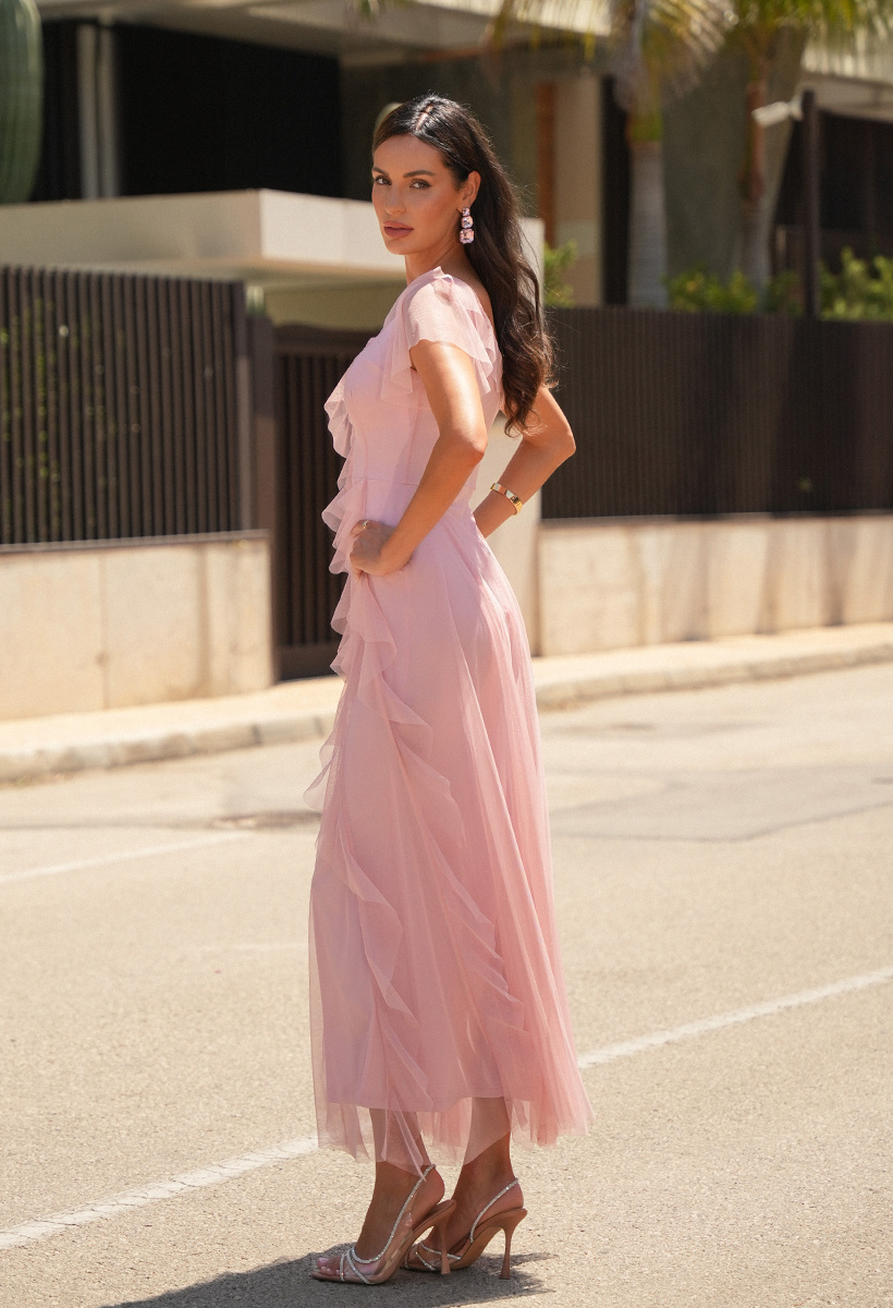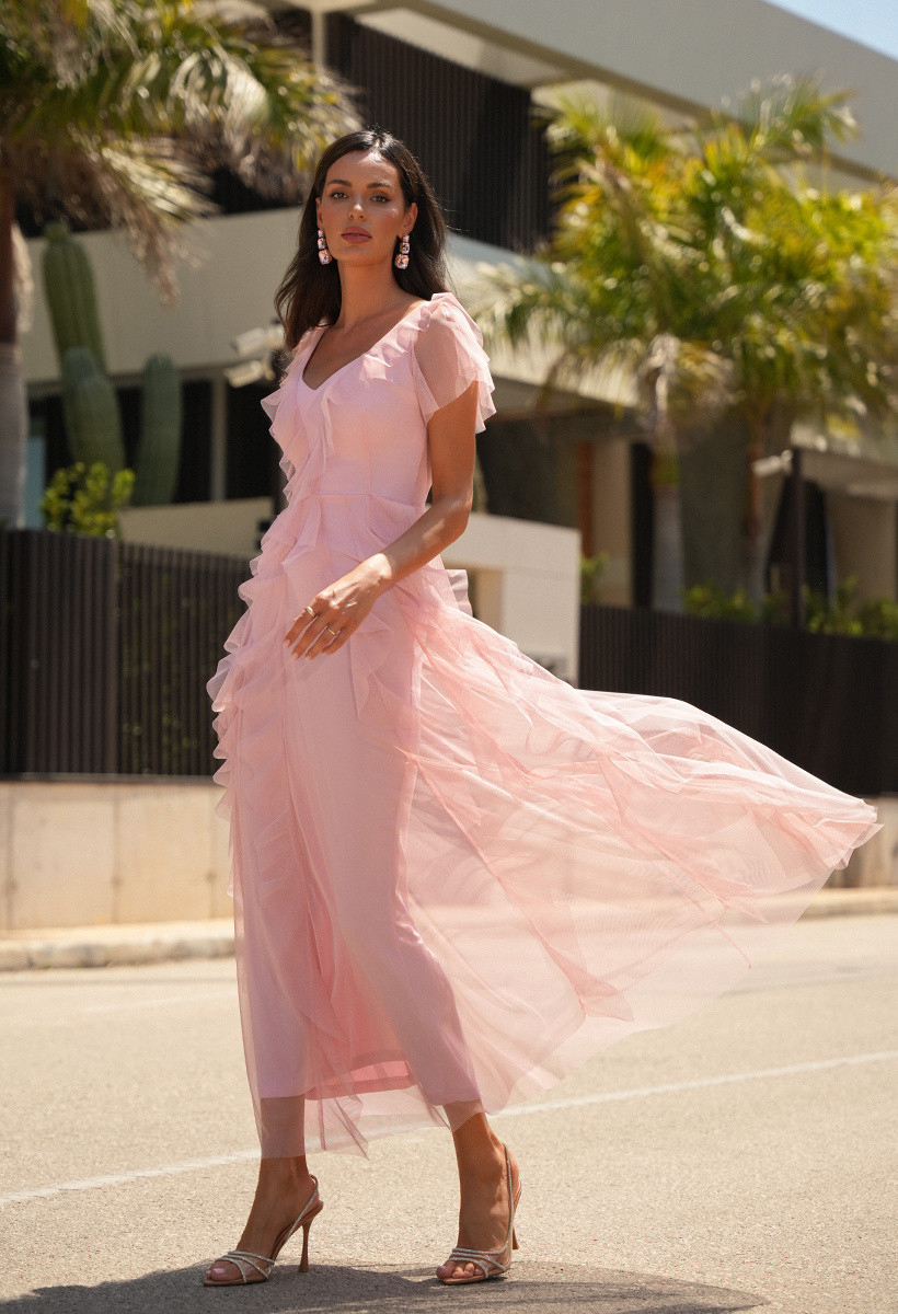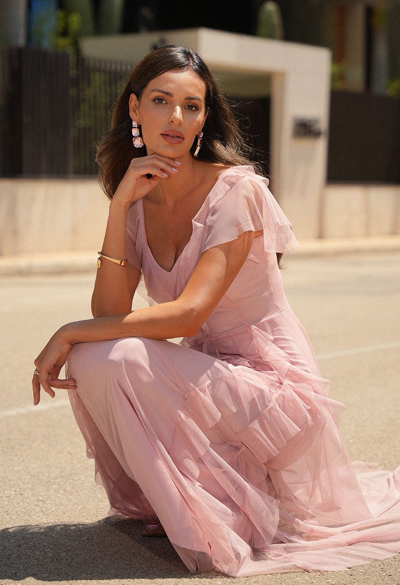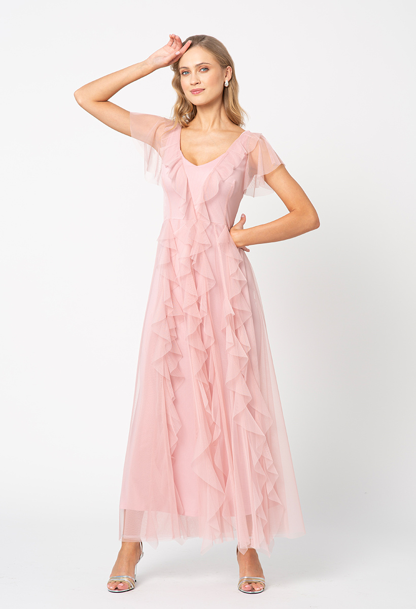 Długa sukienka z tiulu to elegancka i efektowna kreacja, która idealnie pasuje na wydarzenia, takie jak wesela, bankiety, bale lub inne uroczystości. Wykonana z delikatnego, zwiewnego materiału, tiulowa sukienka sprawi, że poczujesz się jak prawdziwa księżniczka. Charakteryzuje się długim, opadającym do ziemi fasonem, który nadaje jej szykowności i subtelnej romantyczności. Tiulowe falbany dodają całej sylwetce lekkości i pięknie układają się w ruchu. Dopasowana kolorystycznie podszewka zapewnia odpowiednie pokrycie ciała, jednocześnie pozwalając tiulowi na swobodne unoszenie się.