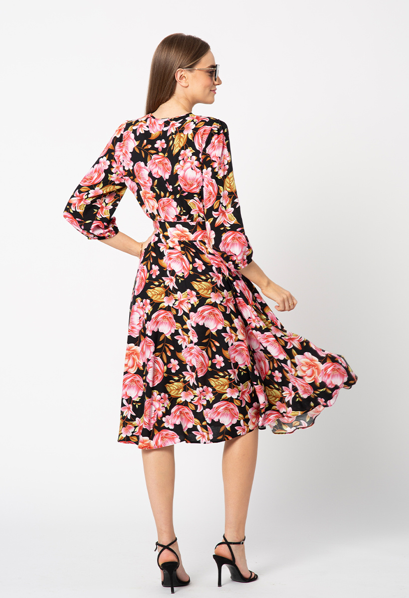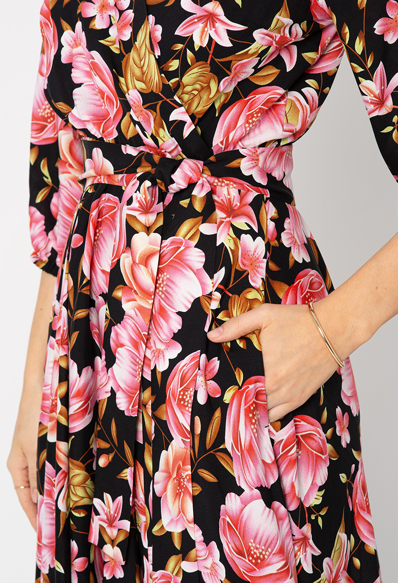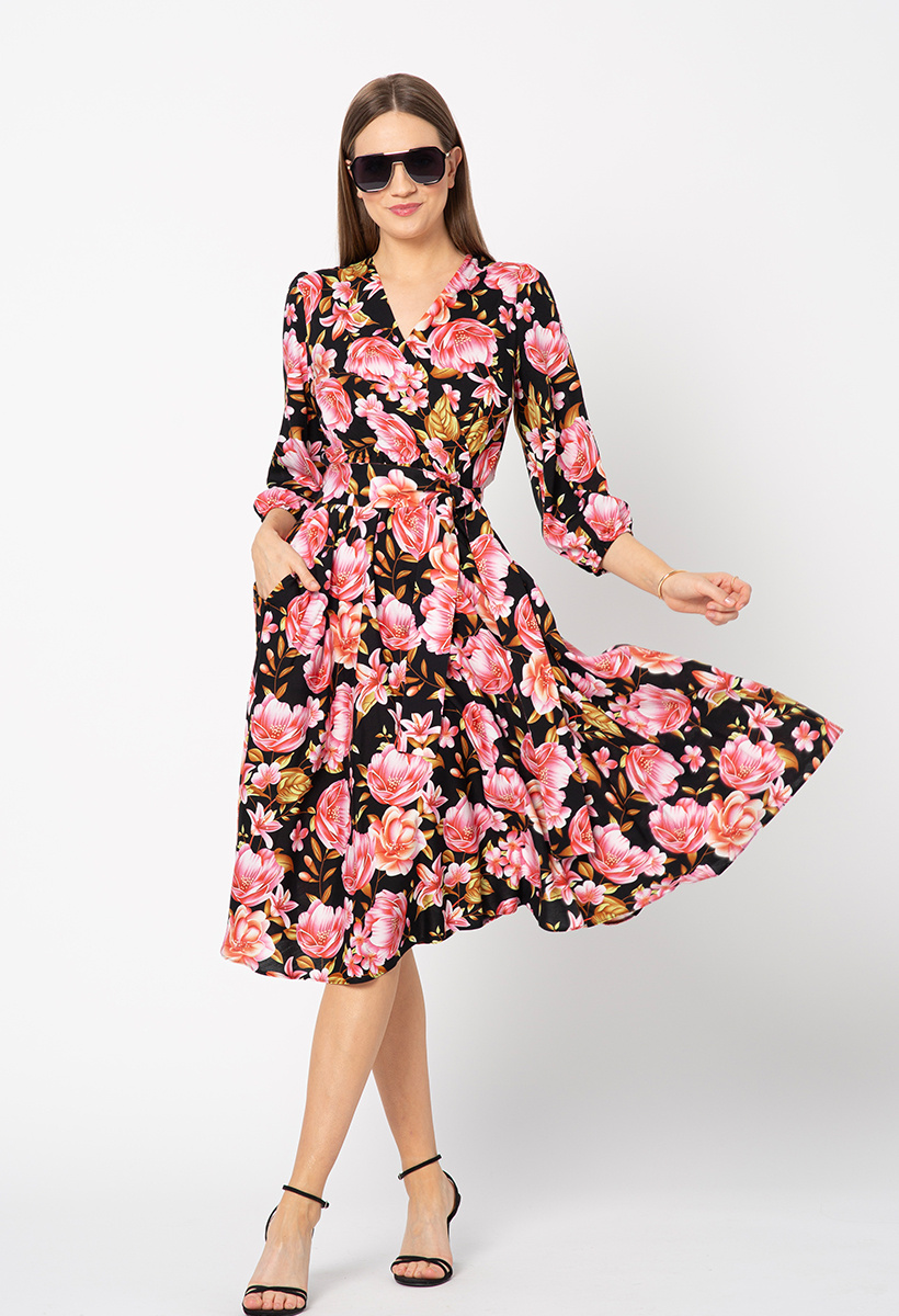 Sukienka kopertowa z wiskozy w malinowe kwiaty Marla