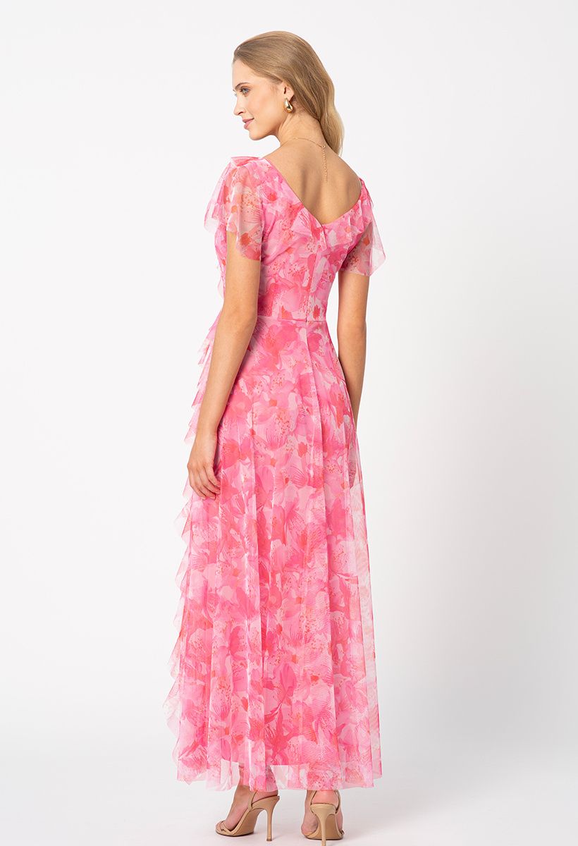 - Wykonana z delikatnego, zwiewnego materiału, tiulowa sukienka sprawi, że poczujesz się jak prawdziwa księżniczka. Charakteryzuje się długim, opadającym do ziemi fasonem, który nadaje jej szykowności i subtelnej romantyczności.