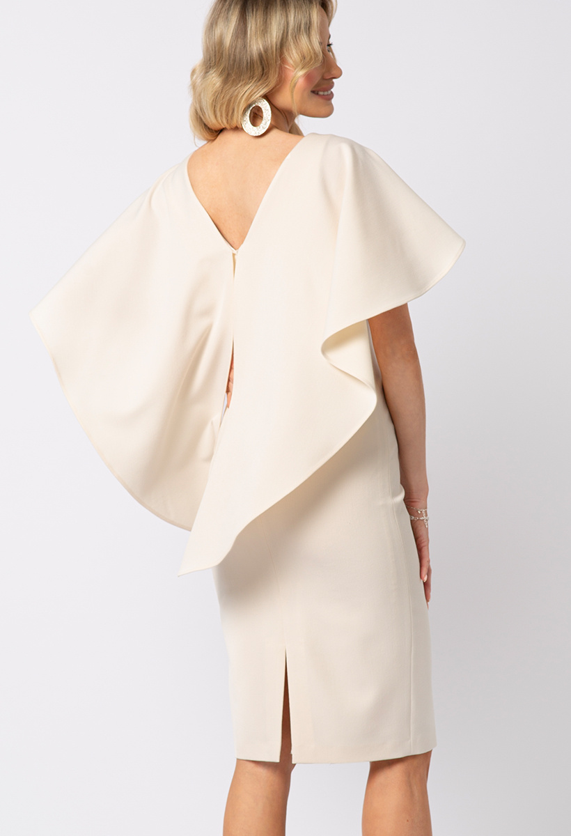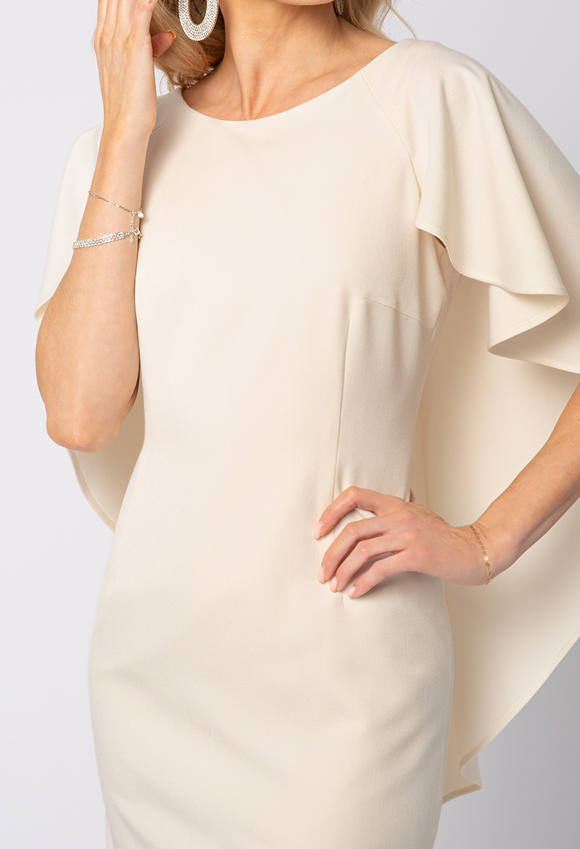 Beżowa dopasowana sukienka z pelerynką Beatrice