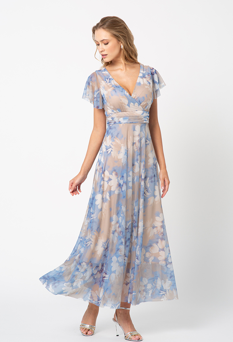 • Oczarowująca w swojej delikatności i romantyzmie, esencja elegancji i kobiecości. Ta długa sukienka zachwyca pięknym kwiatowym wzorem, który nadaje jej subtelności i uroku. Krótkie rękawy oraz kopertowy dekolt dodają szyku i wdzięku całej stylizacji.