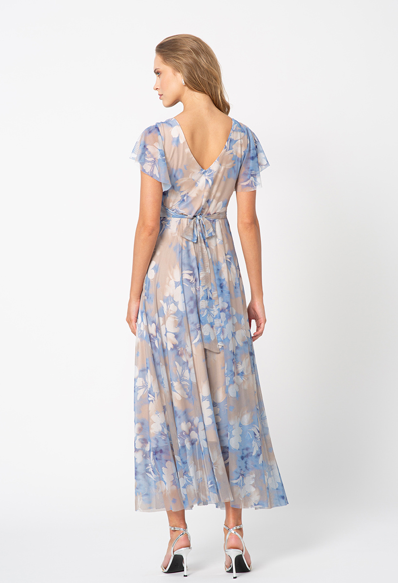 Błękitno-beżowa sukienka z siatki Risa