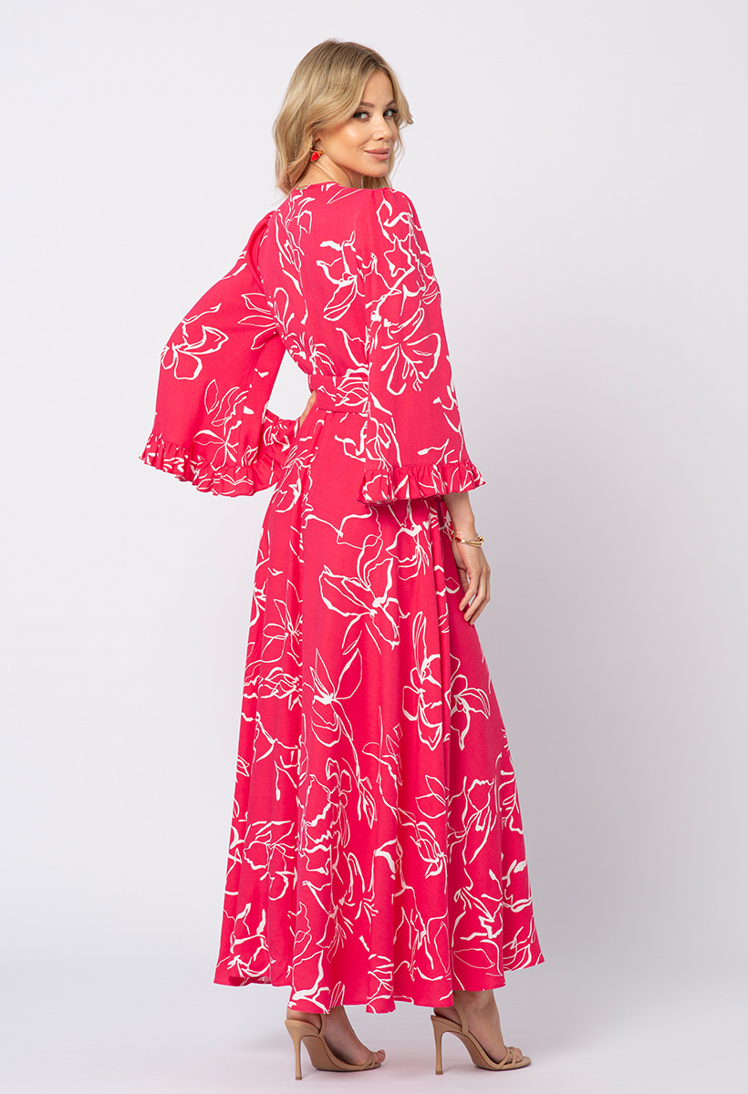 Czerwona sukienka z wiskozy w kwiatowy wzór z rozkloszowanym rękawem Penelope