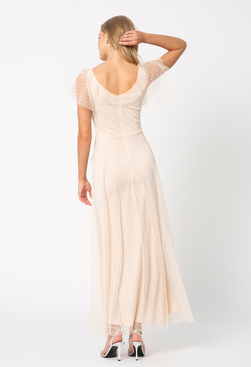 Beżowa sukienka z siatki w groszki Malou