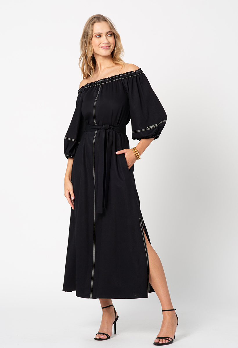 Jej siła tkwi w subtelnych detalach. Czarny kolor dodaje jej elegancji i ponadczasowego charakteru, a kontrastowe przeszycia nadają całości nowoczesnej lekkości. Uszyta w 100% z miękkiej wiskozy, przyjemnie otula ciało niczym mgiełka.