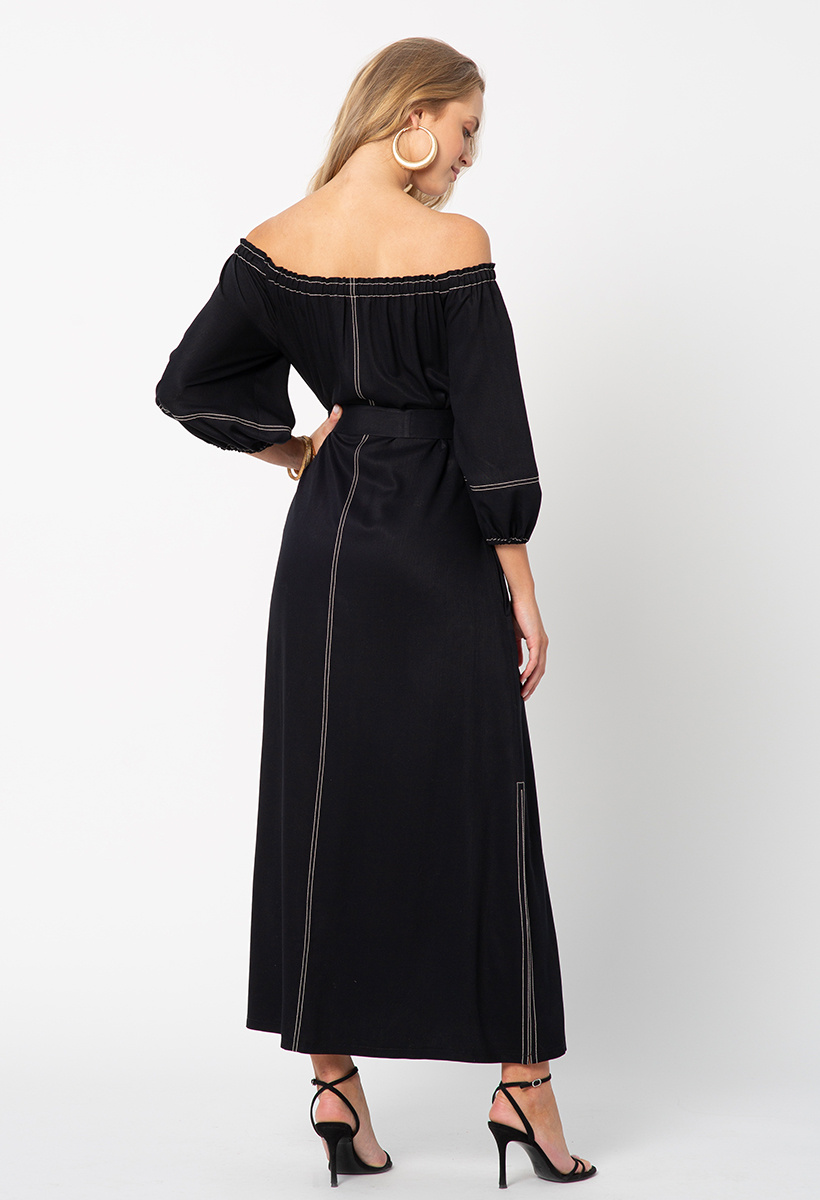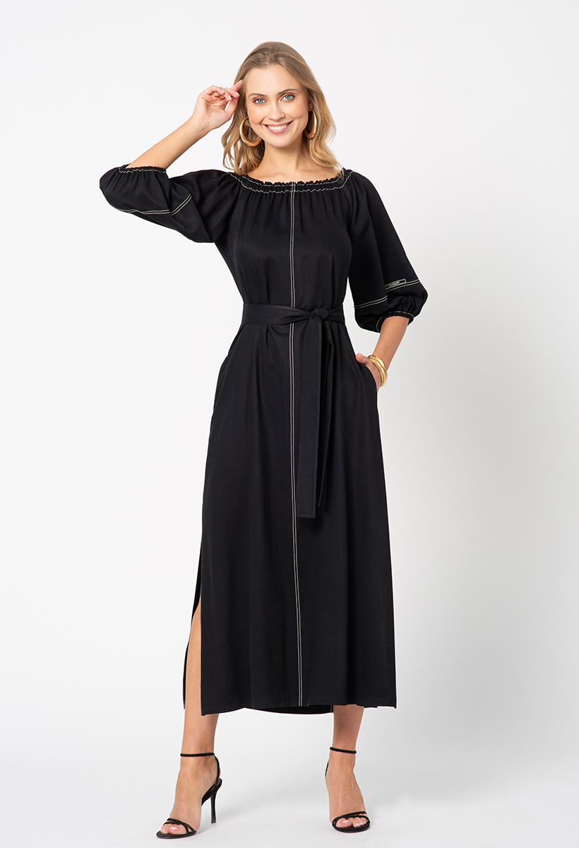 Czarna sukienka z wiskozy z kontrastową nitką Tally