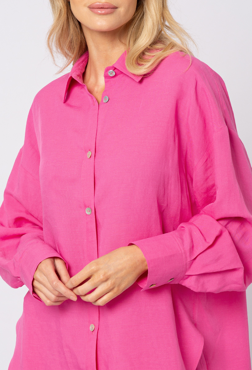 Różowa koszula wiskoza z lnem