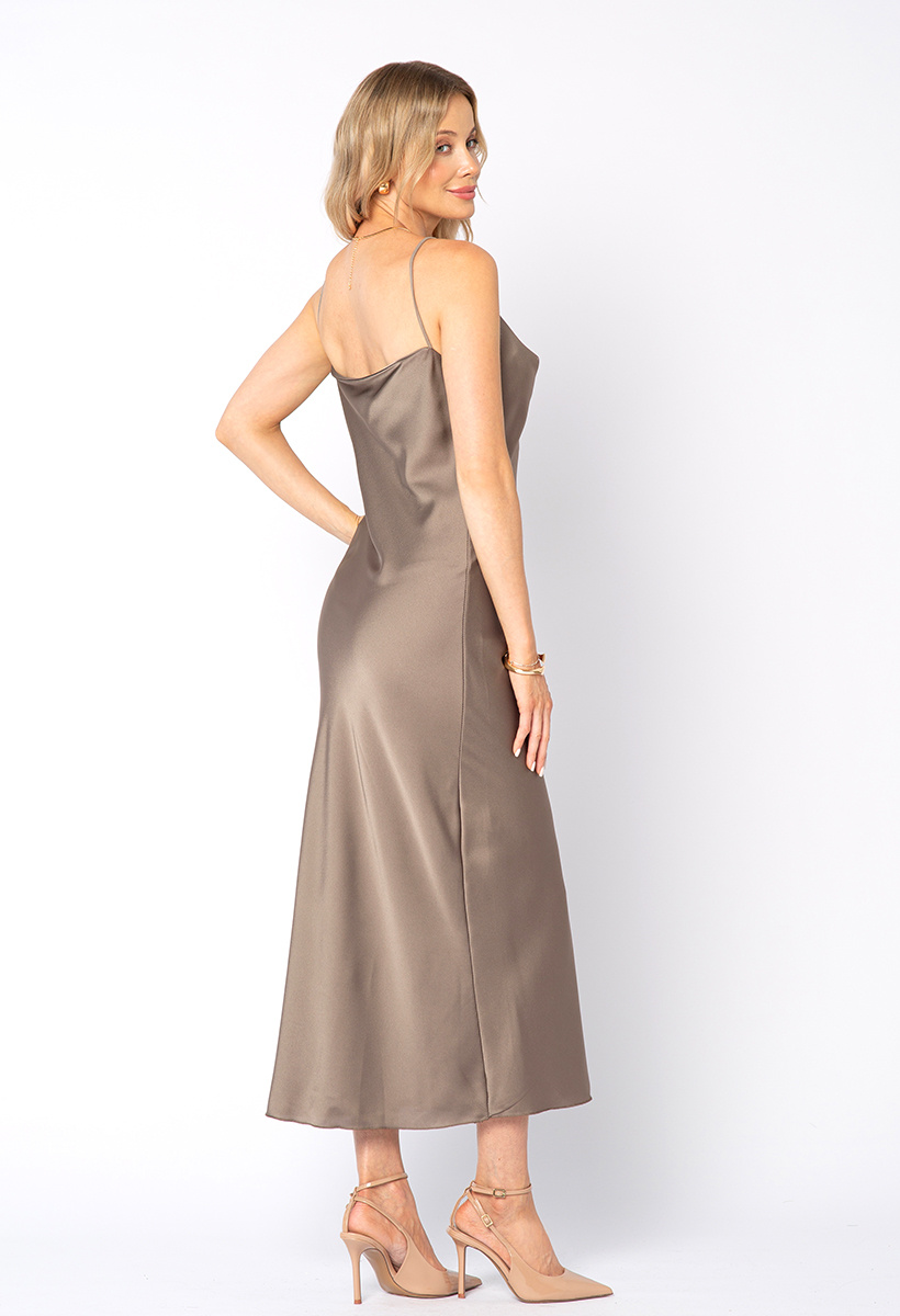 Delikatność, która robi wrażenie. Satynowa sukienka cięta ze skosu to esencja kobiecego minimalizmu – subtelna, lekka i zmysłowa w najpiękniejszy możliwy sposób.