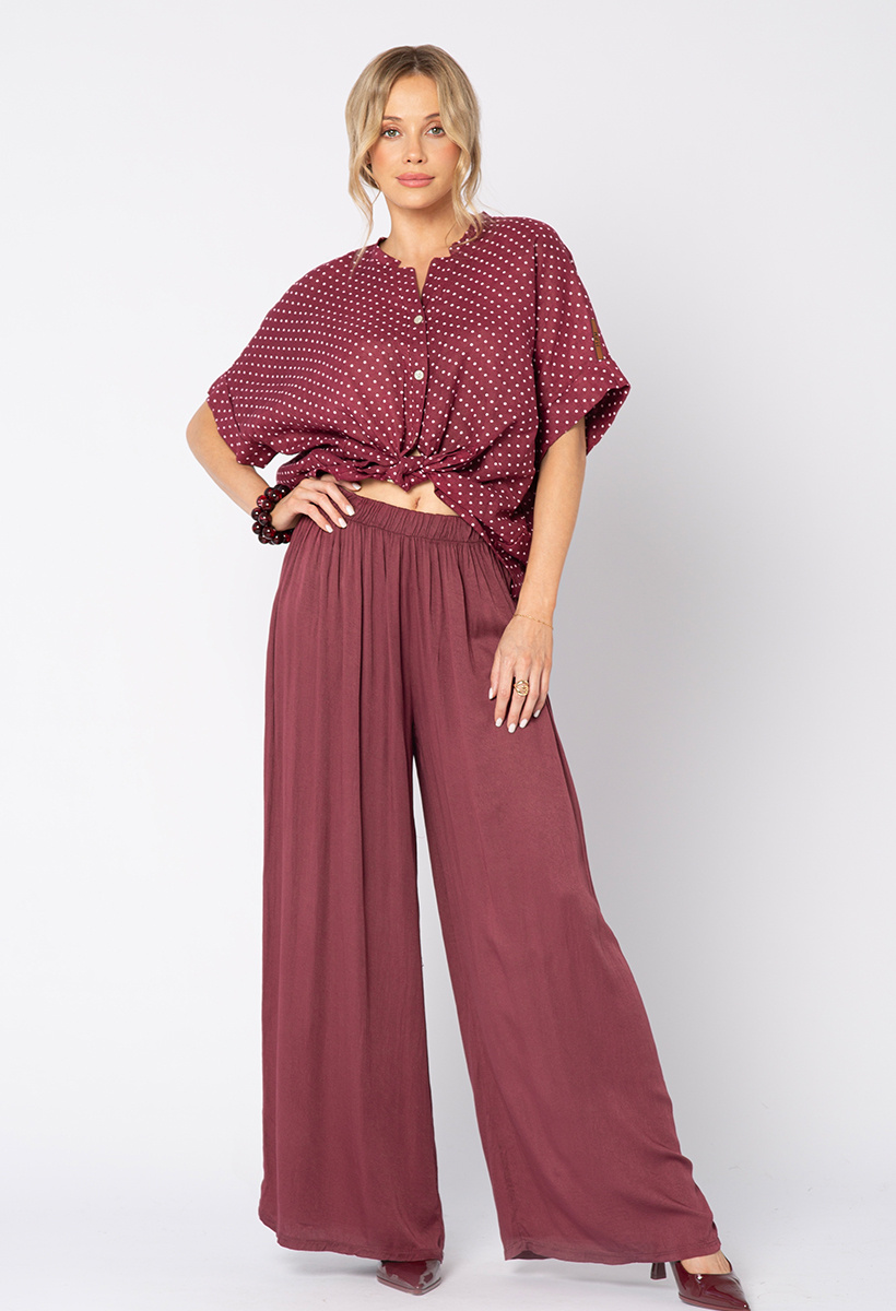 - Lekkość w wersji ultra wygodnej. Kwintesencja komfortu i stylu. Ich szerokie nogawki pięknie układają się w ruchu, tworząc efekt eleganckiego kroju, który subtelnie wydłuża sylwetkę. Model one size, z gumką w talii, odpowiedni dla rozmiaru S - XL.