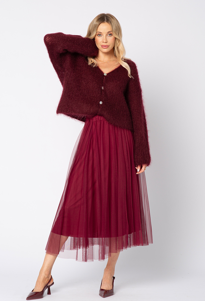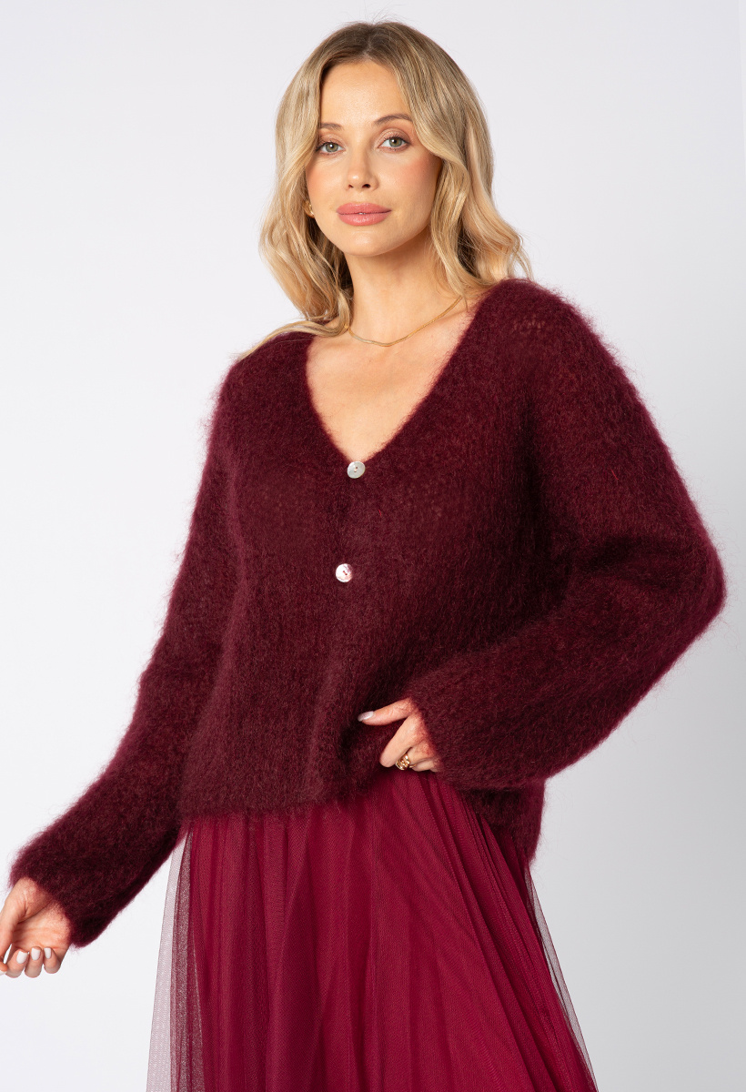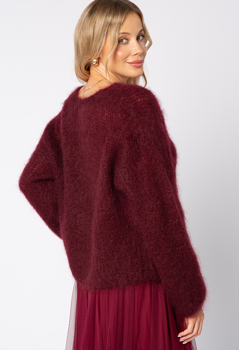 Moherowy bordowy sweter zapinany na guziki