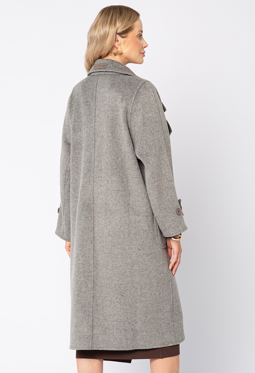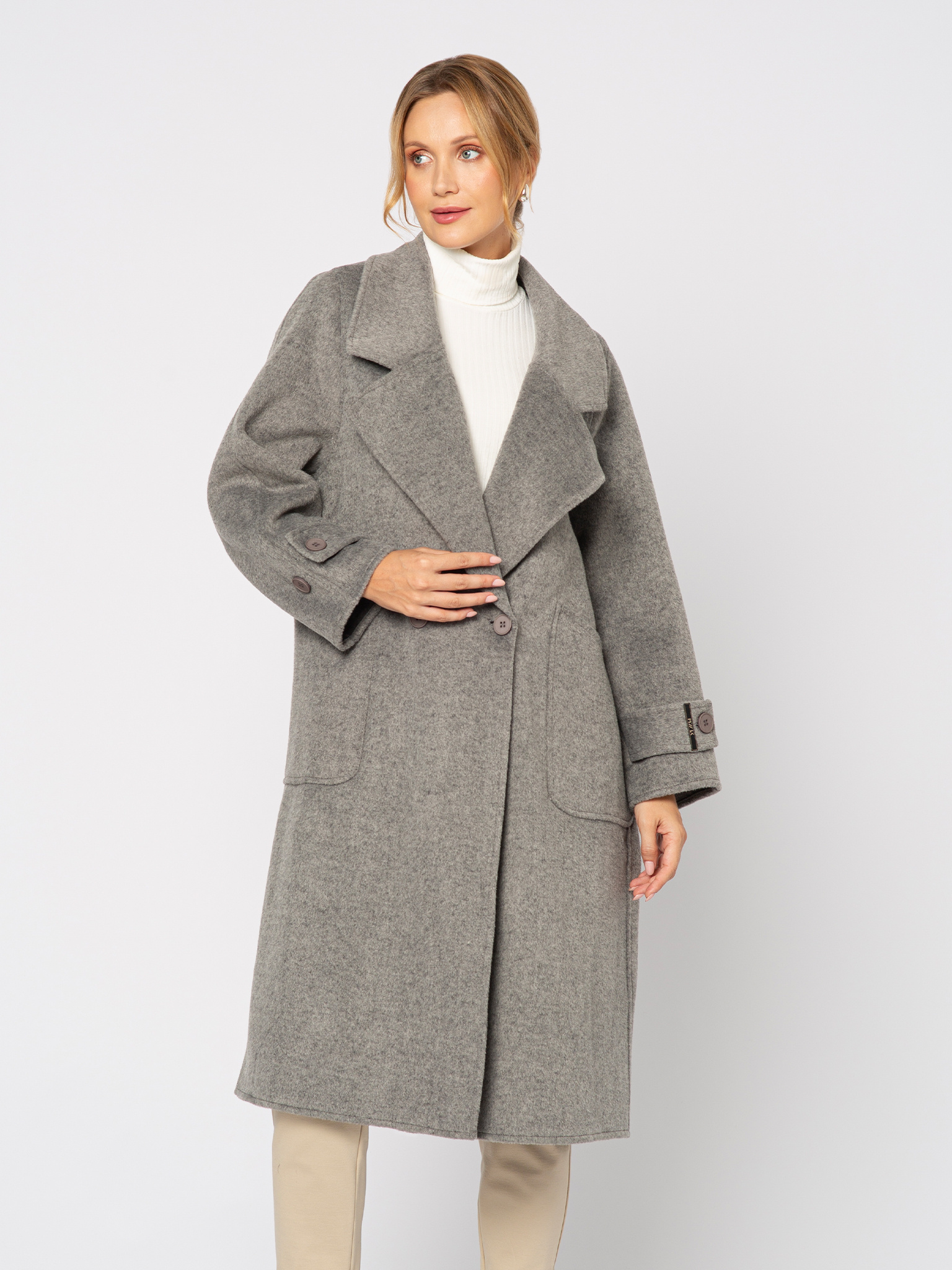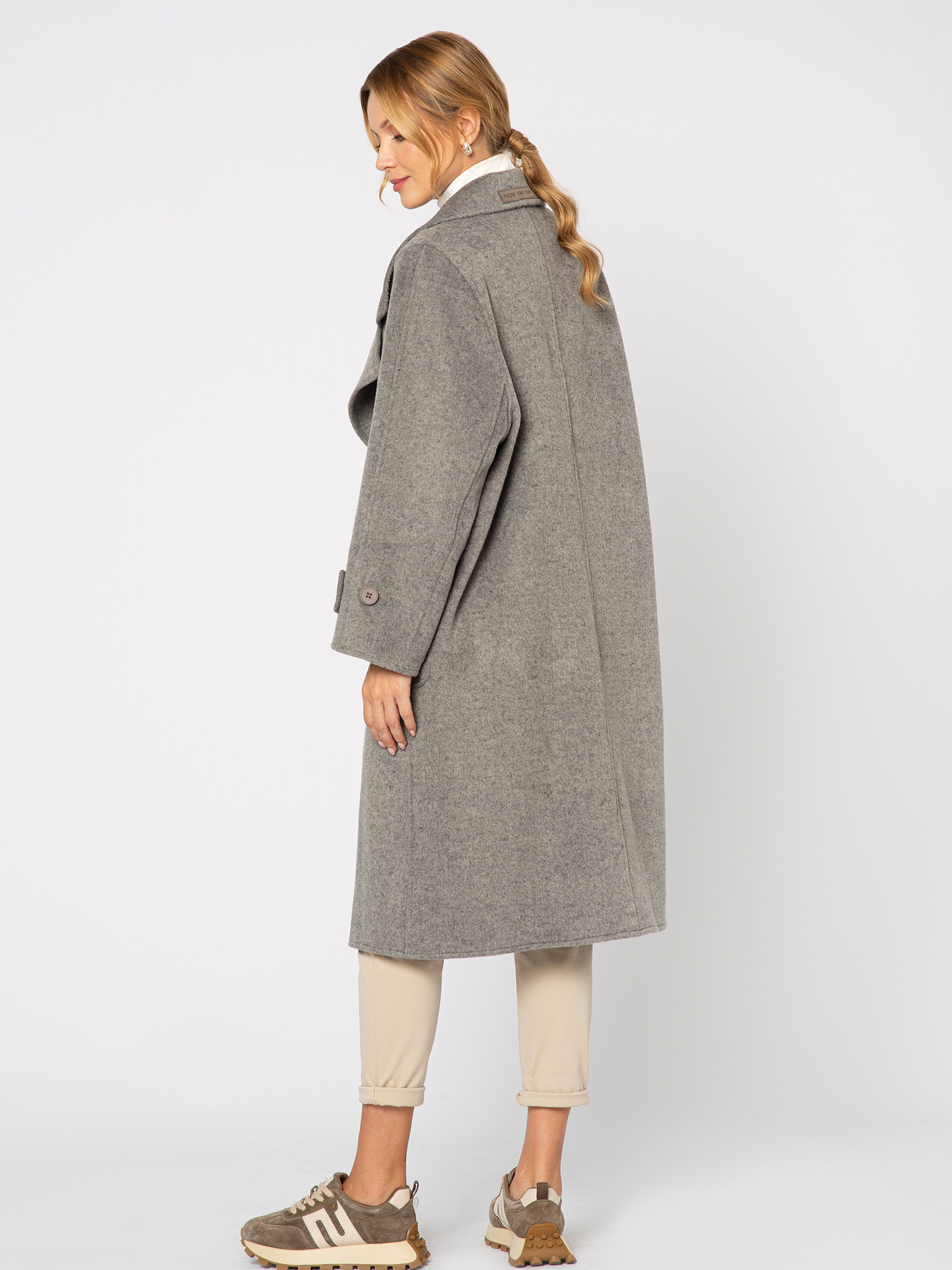 Szary wełniany płaszcz z dużymi kieszeniami bez podszewki