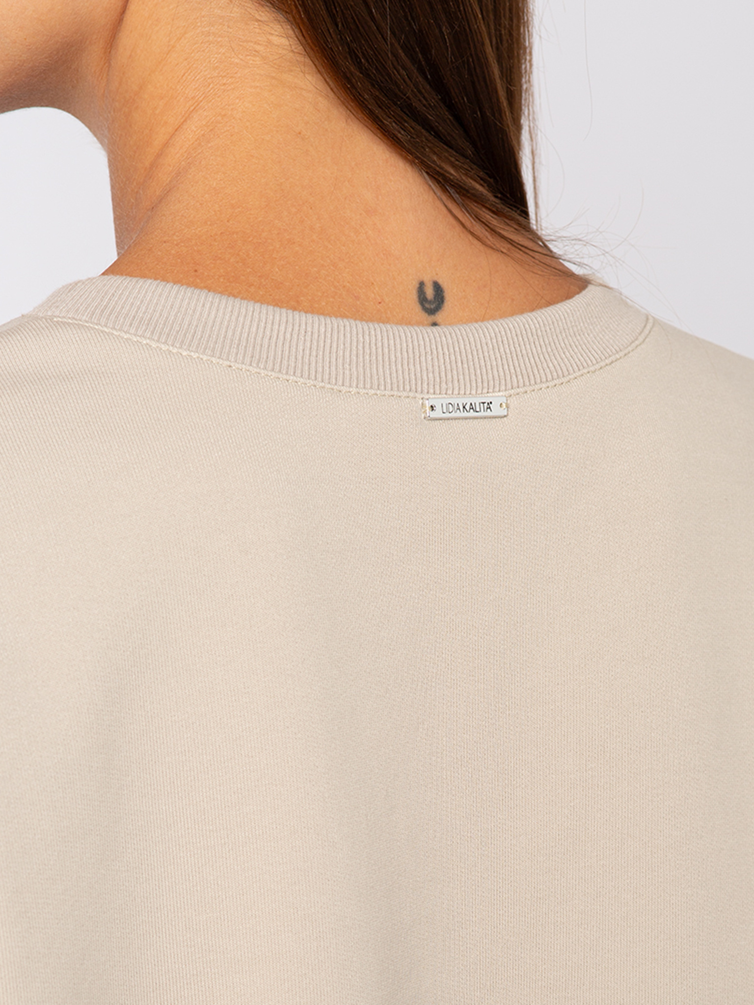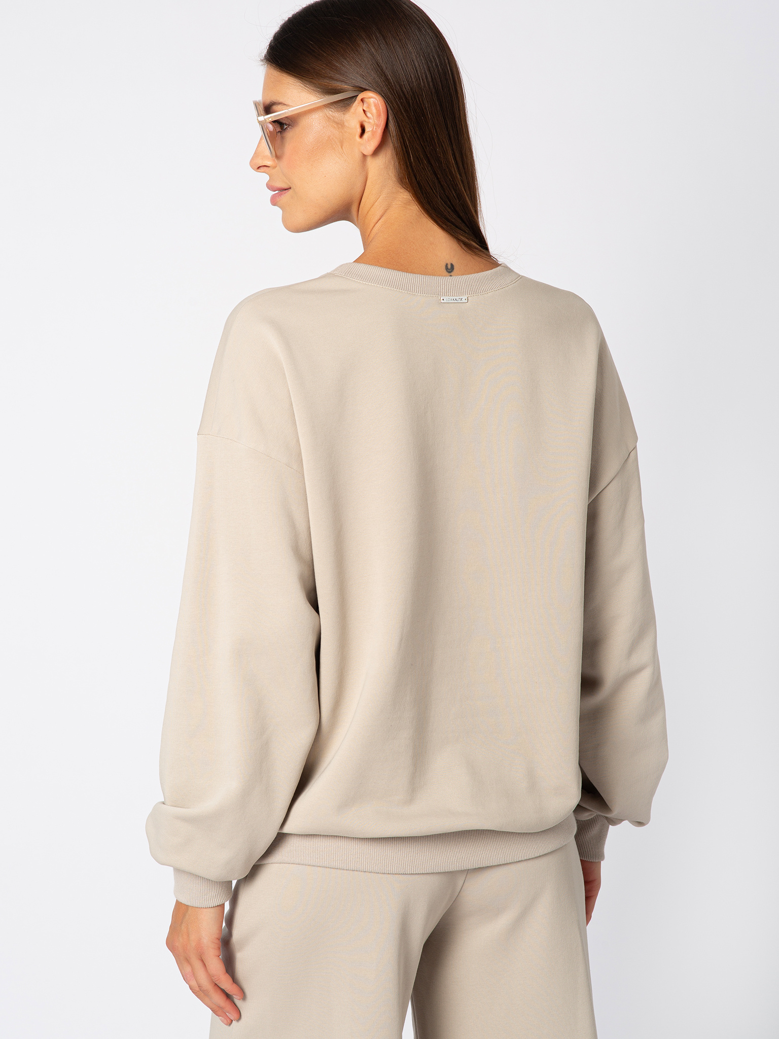 Elegancka jak chwila spokoju w paryskiej kawiarni. Bluza dresowa Latte w odcieniu taupe to klasyka z nowoczesnym akcentem. Delikatne tłoczenie logo Lidia Kalita na przodzie czyni z niej model wyjątkowy, a jednocześnie subtelny. Uszyta z lekkiej, niedrapanej bawełny z certyfikatem OEKO-TEX Standard 100, zachwyca prostotą formy i miękkością w noszeniu. Dzięki okrągłemu dekoltowi i uniwersalnemu kolorowi świetnie sprawdzi się w wielu stylizacjach, a w komplecie z szerokimi spodniami Latte lub joggerami Latte tworzy pełen harmonii total look.