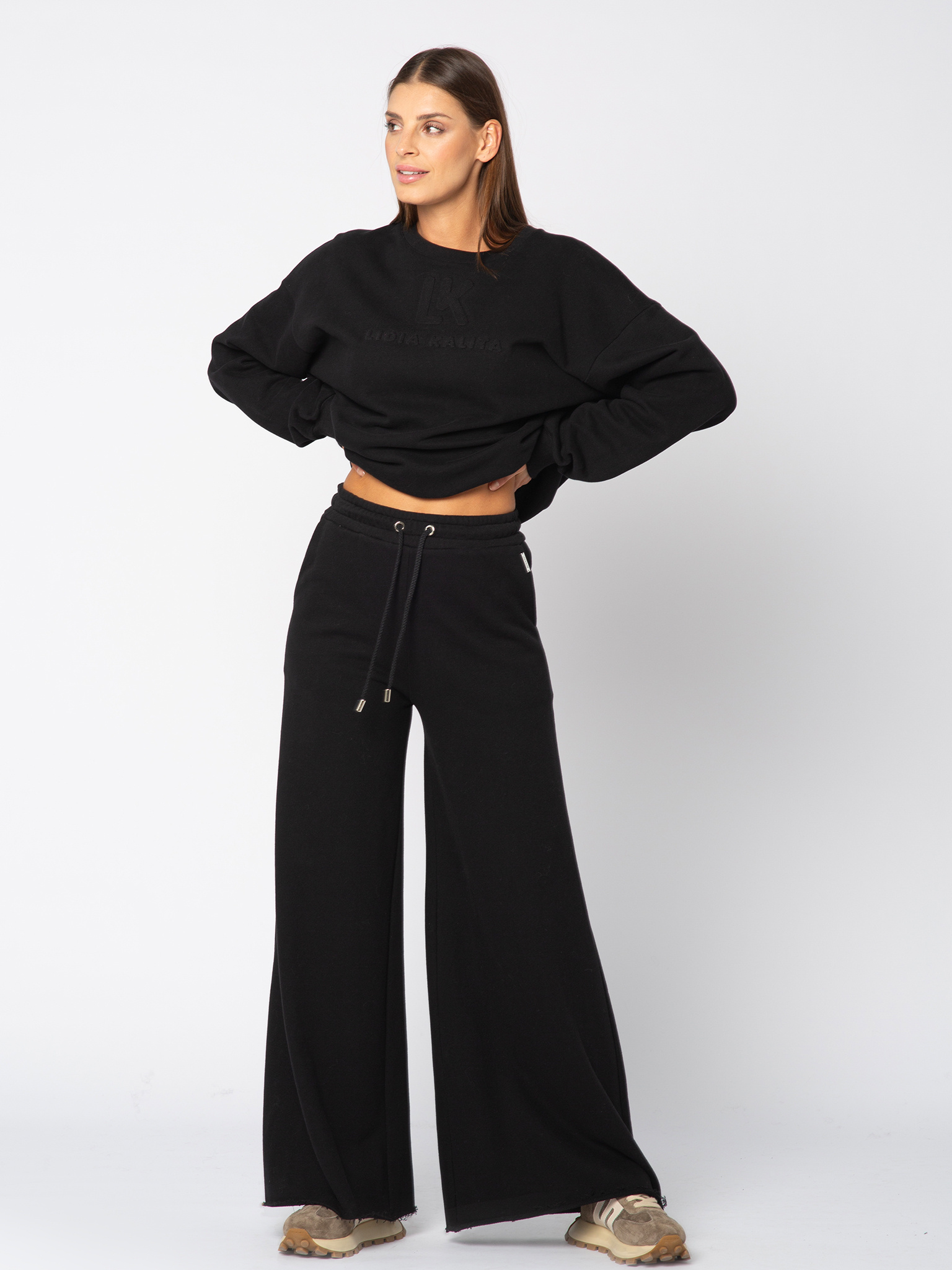 Mocne jak podwójne espresso — bardzo szerokie spodnie dresowe Espresso Doppio to kwintesencja nowoczesnej wygody z nutą paryskiego szyku. Uszyte z gładkiej, niedrapanej dzianiny bawełnianej z certyfikatem OEKO-TEX Standard 100, są lekkie, oddychające i idealne na każdy dzień. Szeroka nogawka nadaje im wyrazistego charakteru, a elastyczna talia i kieszenie po bokach zapewniają komfort noszenia. To spodnie, które łączą minimalistyczną formę z wyrafinowaną prostotą. Idealne do stworzenia mocnego monolooku z bluzą z tłoczeniem LK Espresso.