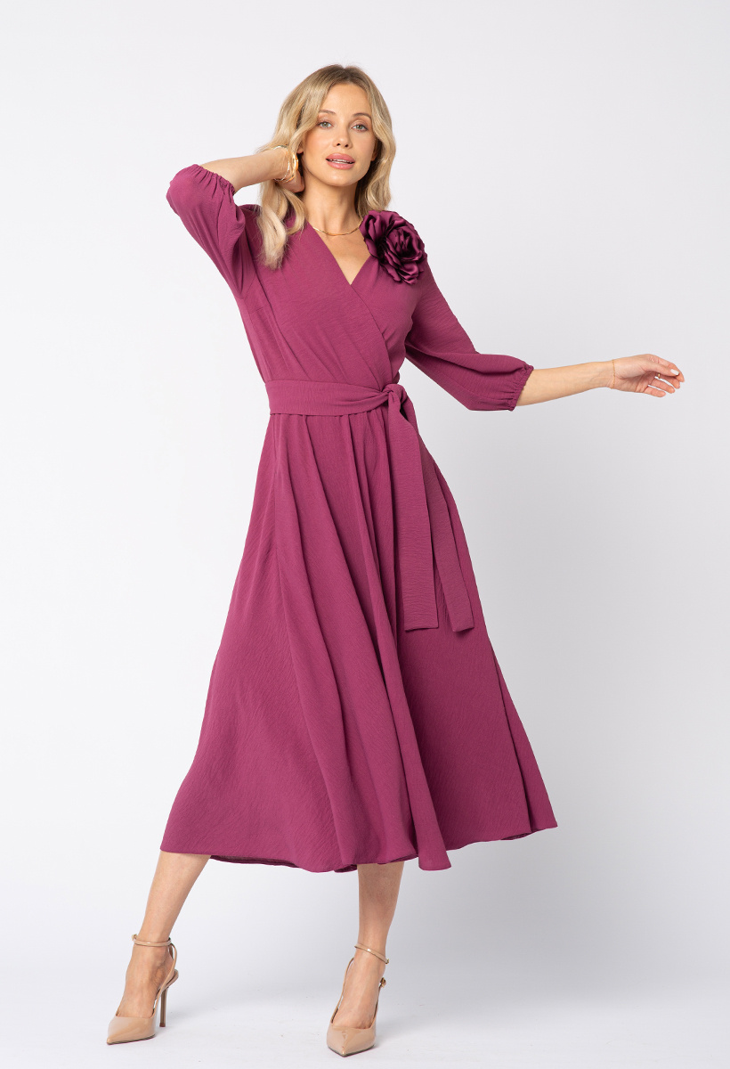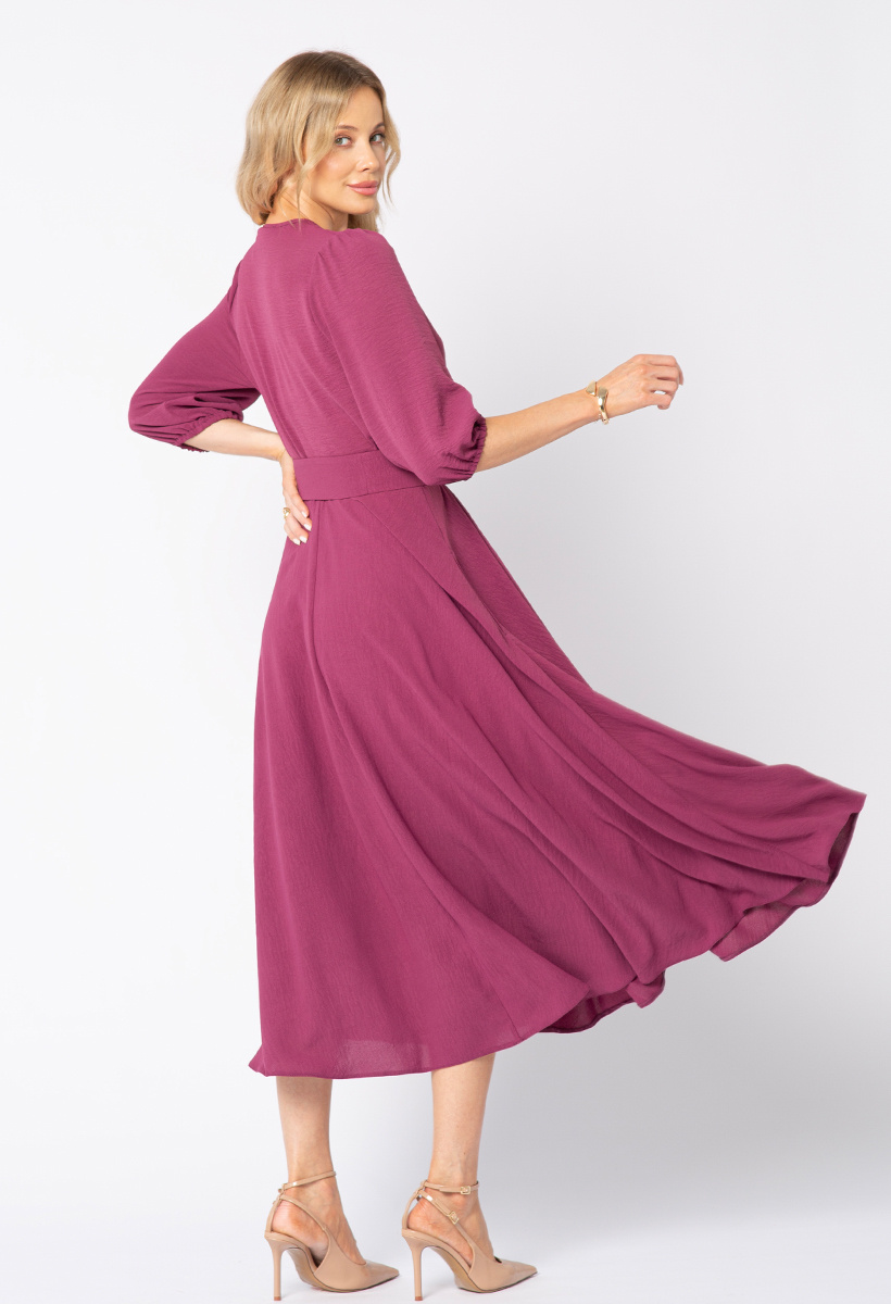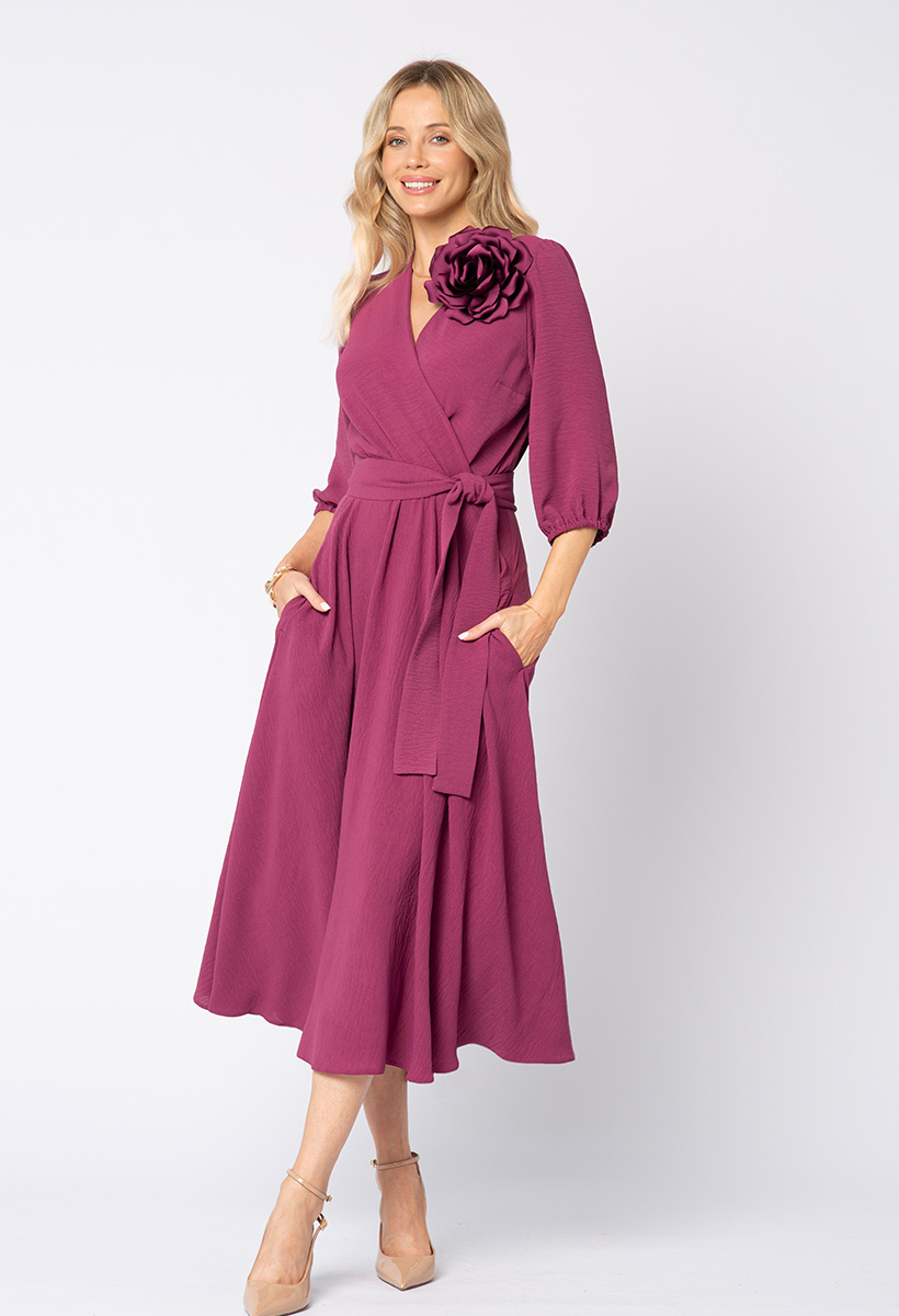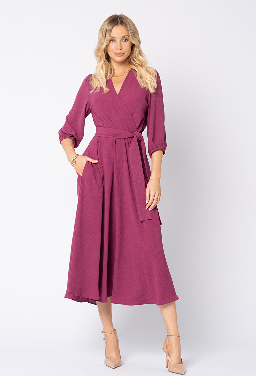 Purpurowa Ophélie to hołd dla zmysłowości - piękny głęboki odcień, przypominający jesienny zmierzch nad Sekwaną. Idealna dla kobiet, które kochają klasykę, ale pragną dodać jej odrobinę intensywności. Sukienka Ophélie to kwintesencja paryskiej elegancji w jesiennym wydaniu. Ponadczasowy kopertowy dekolt, rozkloszowana spódnica pięknie układająca się w ruchu oraz przewiązywany w talii pasek podkreślający kobiecą sylwetkę sprawiają, że to sukienka, która nigdy nie wychodzi z mody. Dodatkowym atutem są praktyczne kieszenie, które nadają jej nowoczesnego charakteru i luzu à la Parisienne. Wykonana z lekkiej, delikatnej dla skóry tkaniny o subtelnie pomarszczonej fakturze, nie gniecie się i zawsze wygląda perfekcyjnie. Wystarczy zmienić dodatki, by w jednej chwili stała się kreacją na wieczór, do pracy czy na spotkanie z przyjaciółmi.