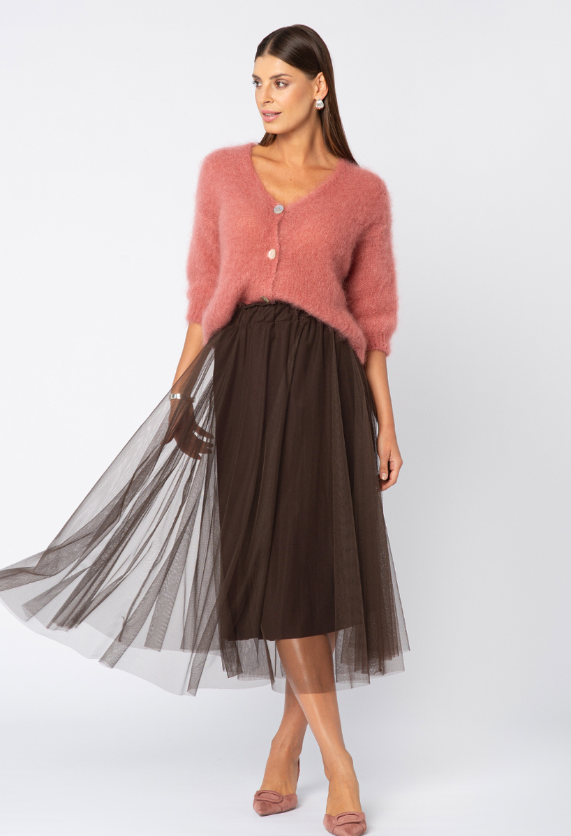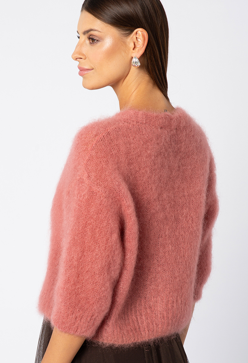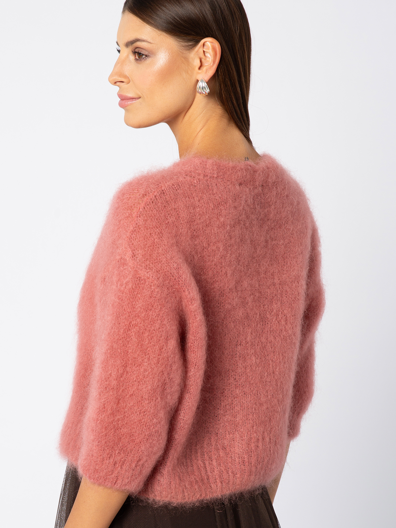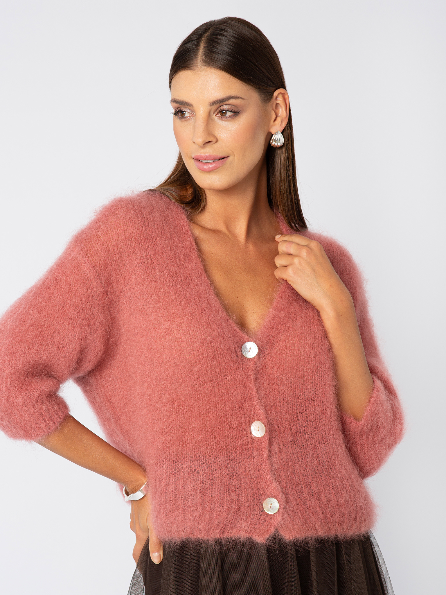 Mohairowy sweter zapinany na guziki w kolorze antycznego różu