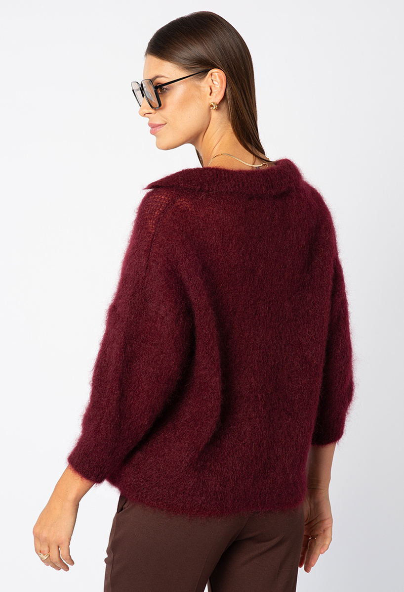 Mohairowy sweter w kolorze czerwonego wina z kołnierzykiem
