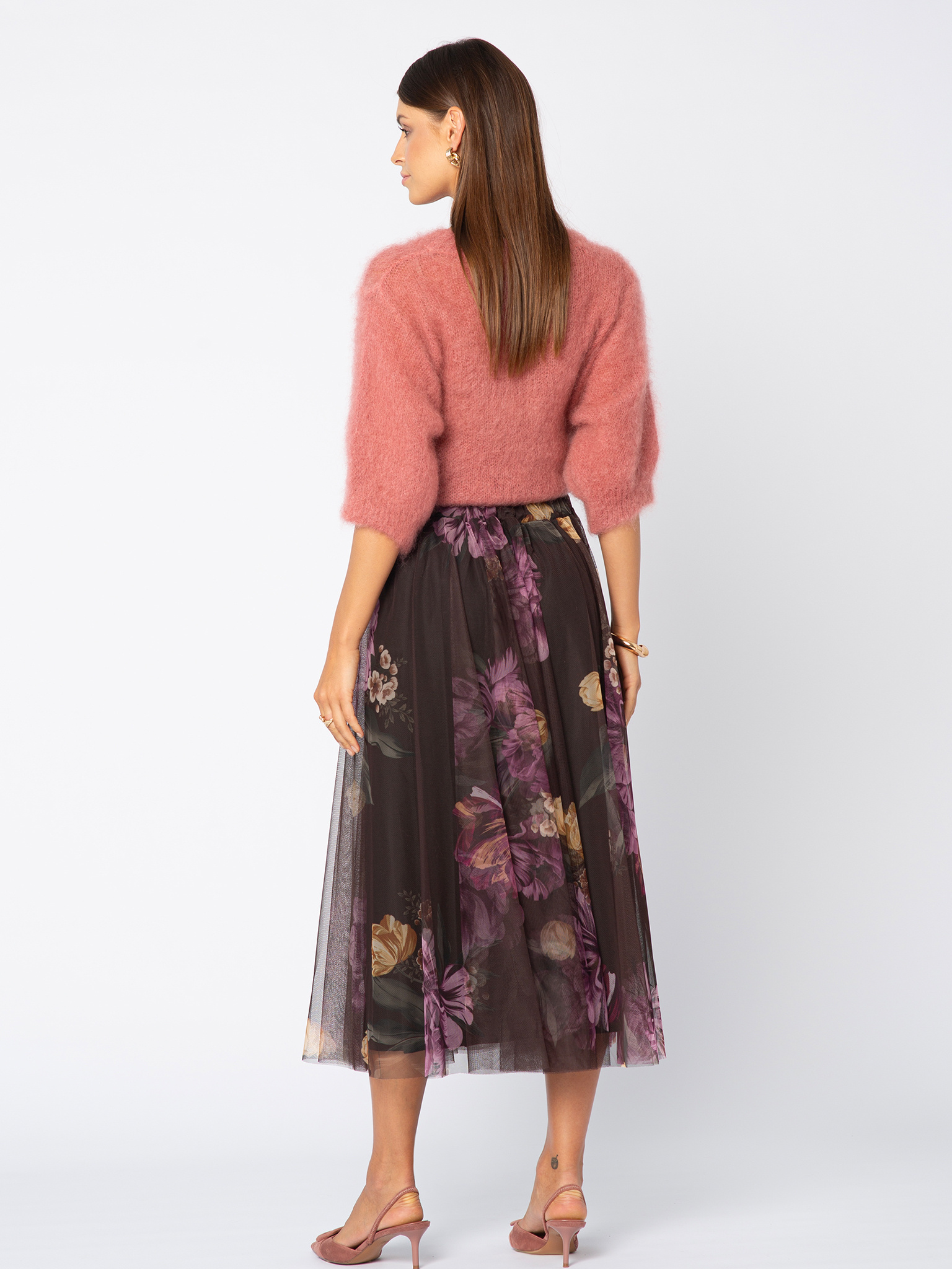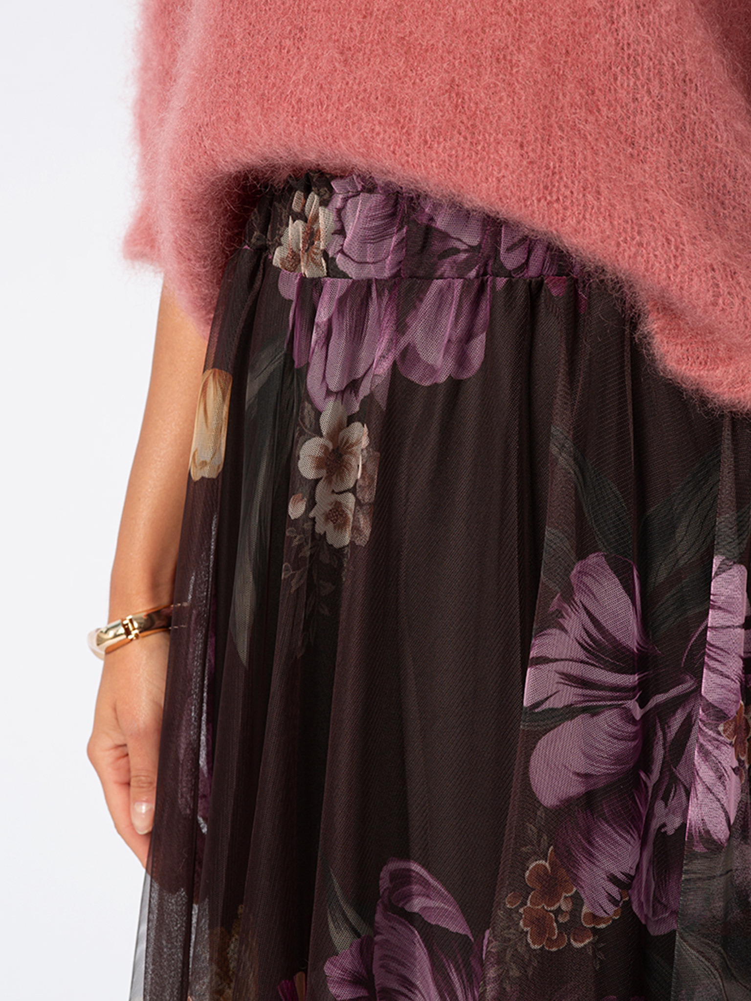 Brązowa tiulowa spócnica w fioletowe kwiaty