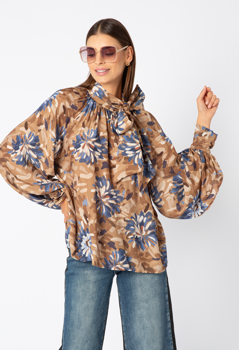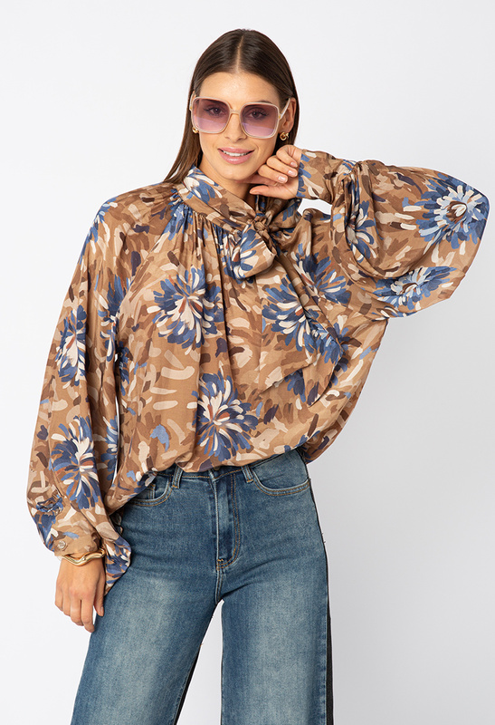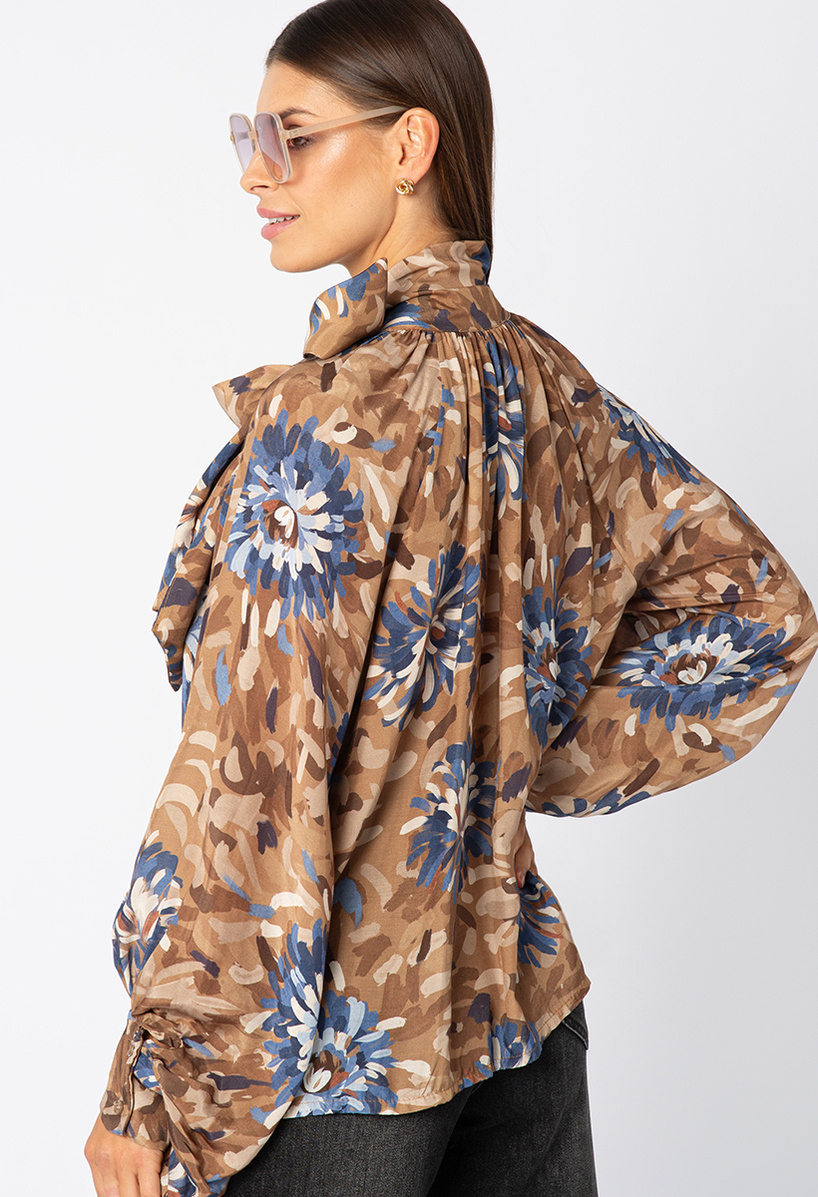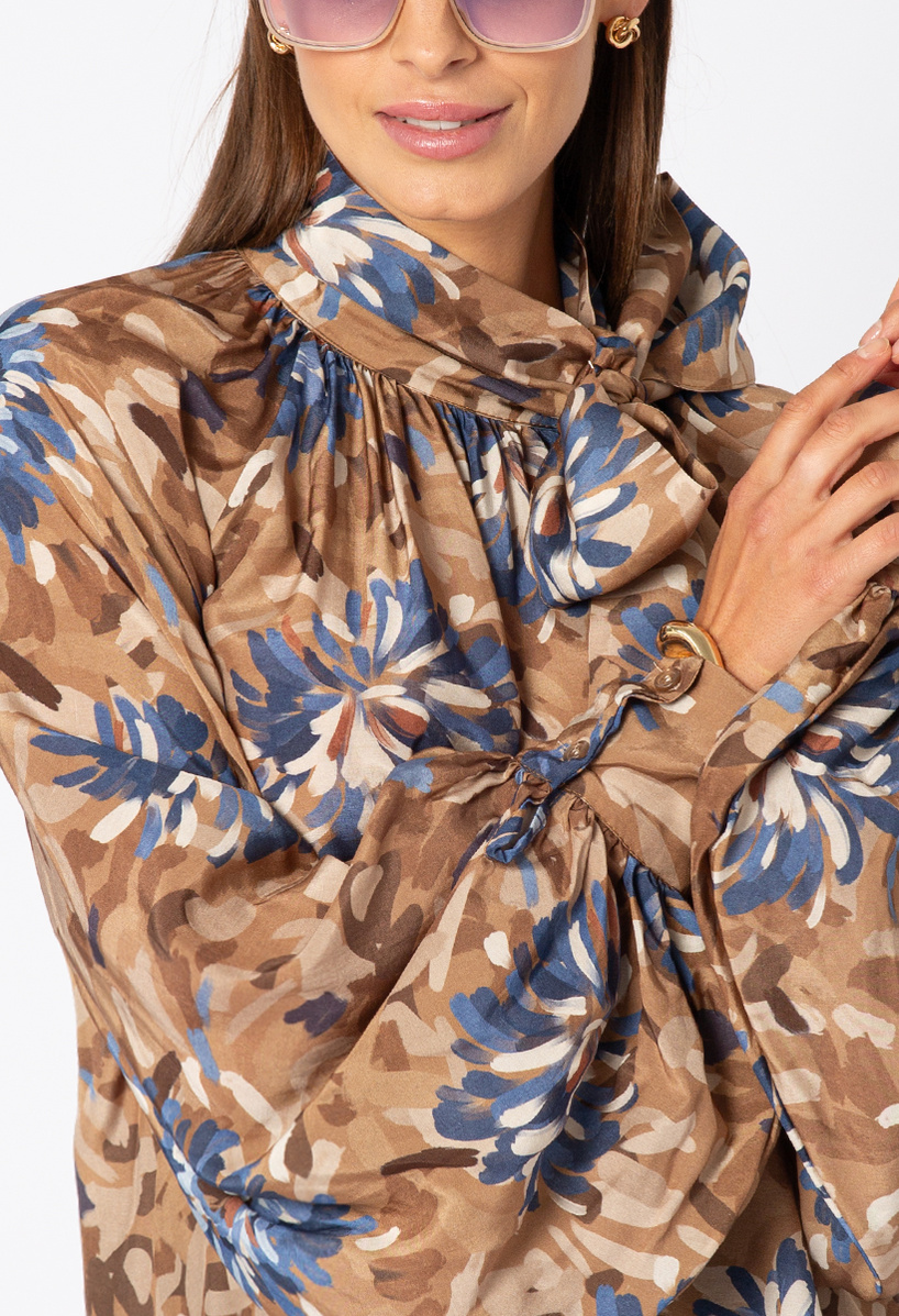 Brązowa koszula z lyocelu w kwiaty