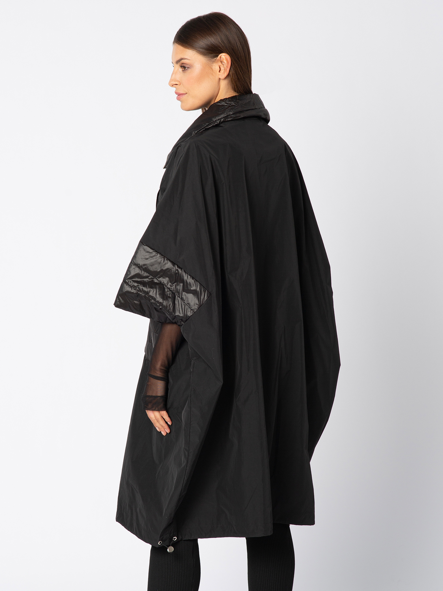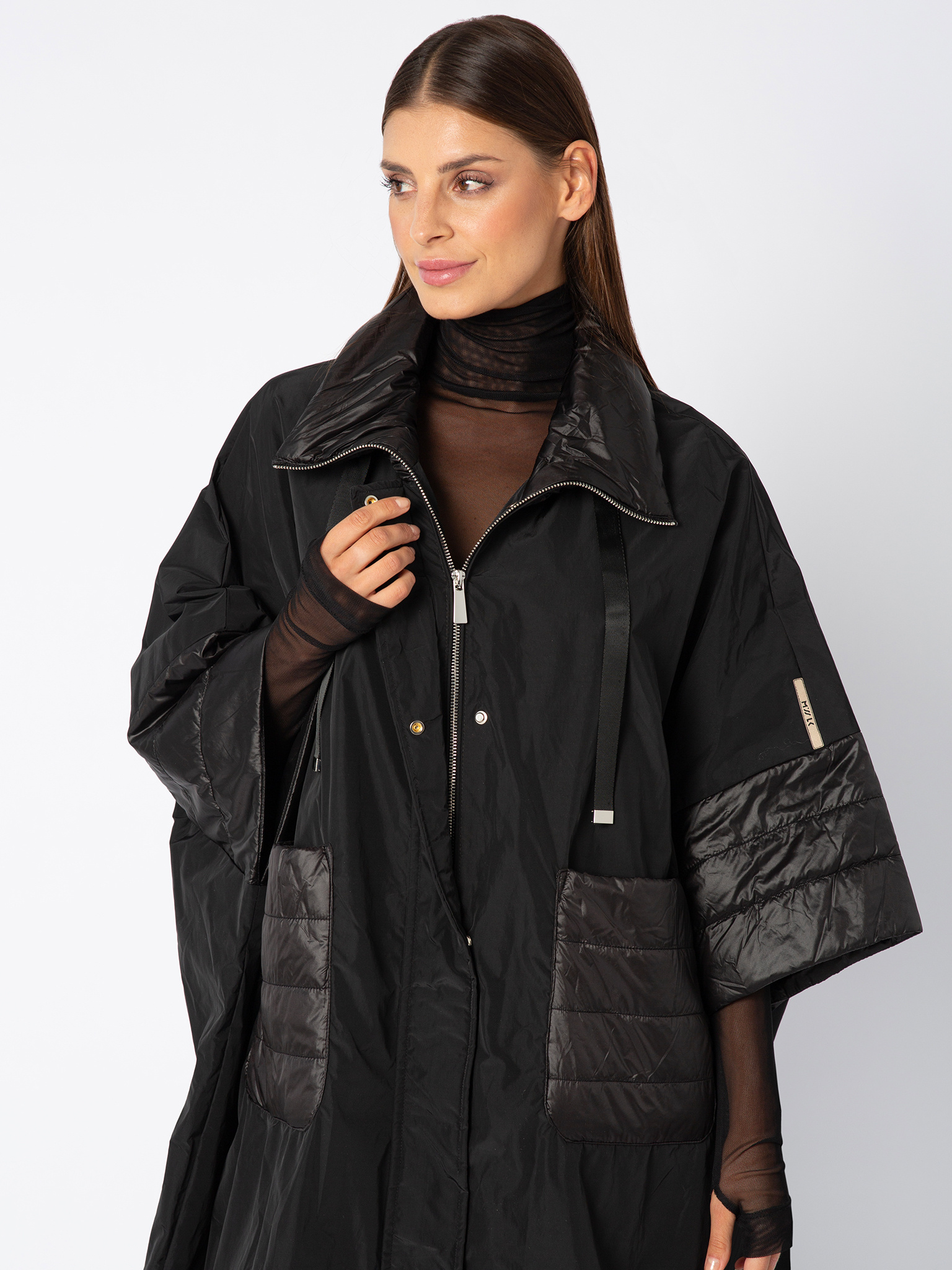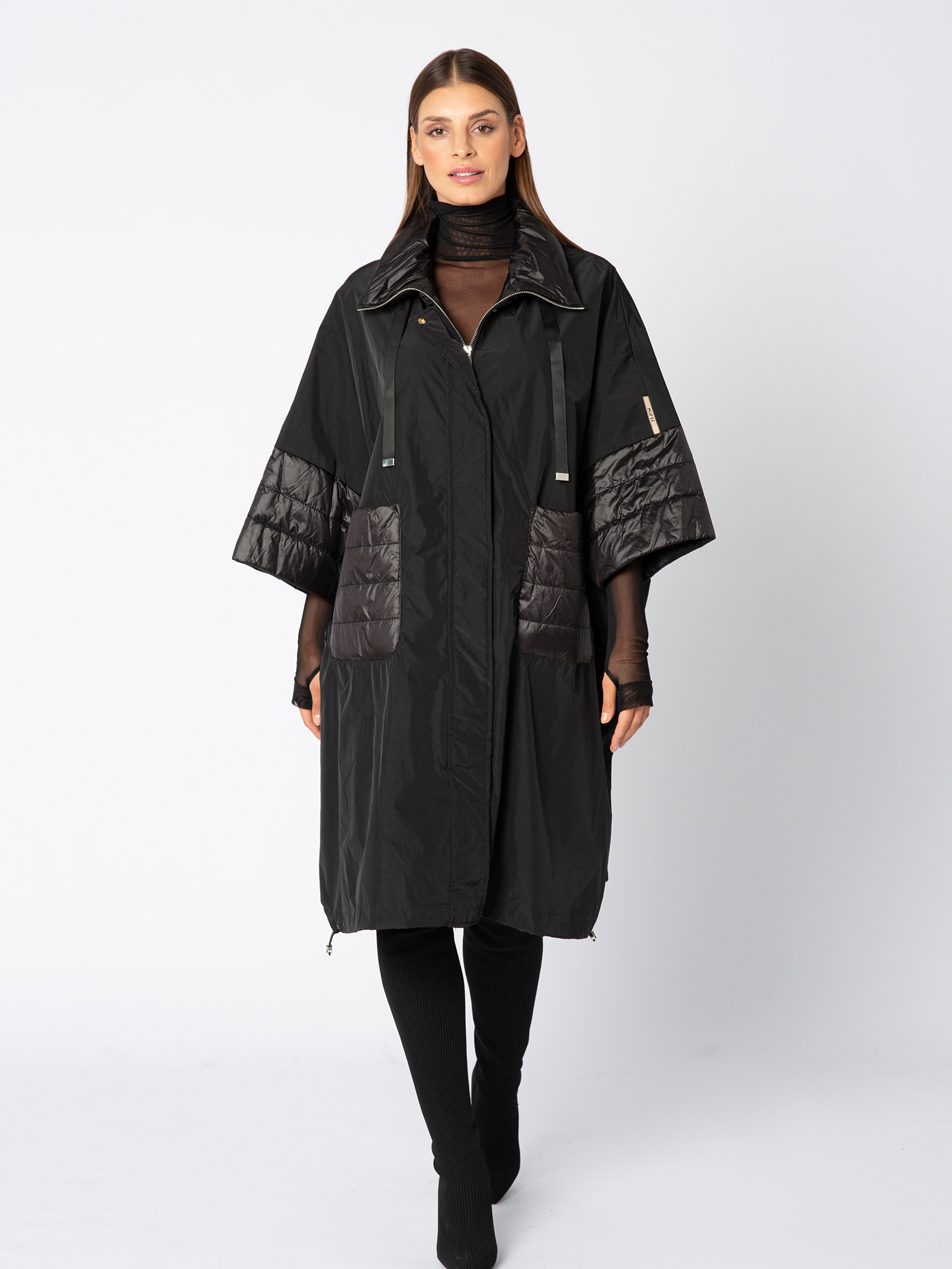 To płaszcz, który otula niczym luksusowy kokon – miękkie pikowania i oversizowy krój sprawiają, że wyróżnia się na tle klasycznych modeli. Czerń w nowoczesnym wydaniu podkreśla jego ponadczasową elegancję, a rozszerzane rękawy zwieńczone szerokimi pikowaniem dodają mu artystycznego charakteru. Zwężający się ku dołowi fason, regulowany dodatkowo troczkami, pozwala na dopasowanie sylwetki i zabawę proporcjami. Pikowany kołnierz i praktyczne kieszenie dopełniają całości, czyniąc z niego nie tylko modny, ale i funkcjonalny element garderoby. To propozycja dla kobiet, które cenią nieoczywiste kroje i chcą wyglądać spektakularnie także w codziennym wydaniu.